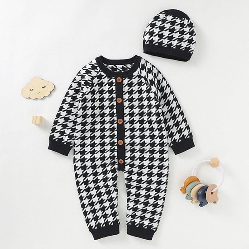 Houndstooth Honey! Baby Romper Set with Cozy Button Design