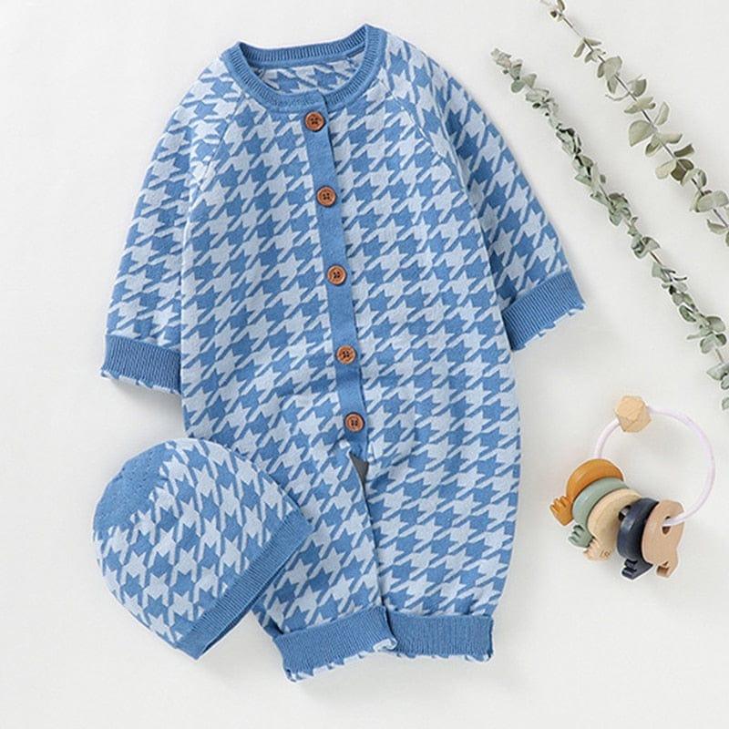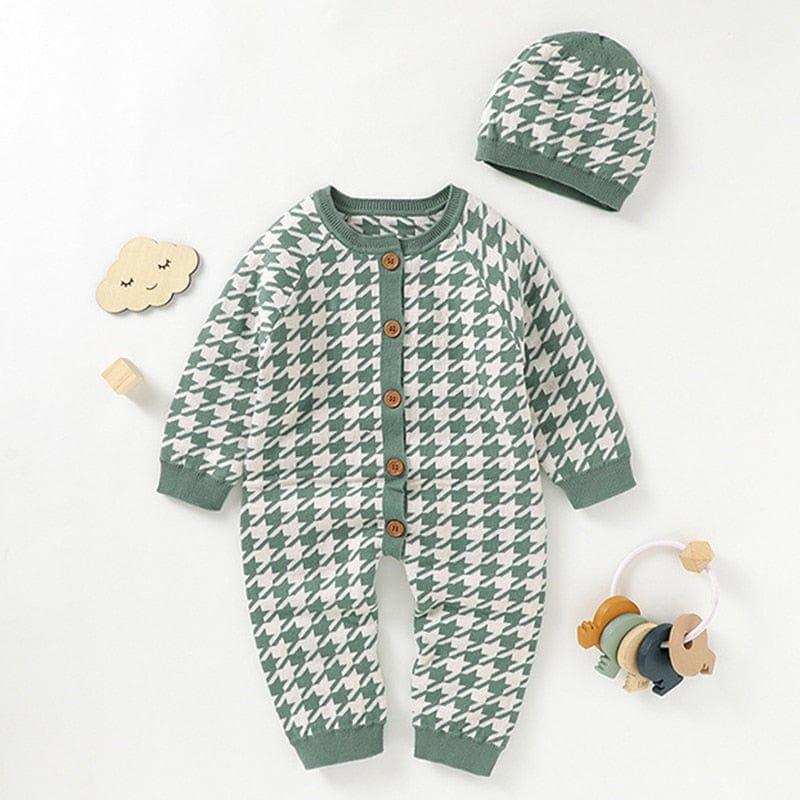 Step your little one into cuteness in our "Houndstooth Honey!" knitted baby rompers & hat sets! These adorable outfits are designed to keep your little one cozy while making a fashionable statement. Featuring a classic houndstooth pattern, these rompers offer a perfect blend of elegance and cuteness. Available in a delightful range of colors—Princess Pink, Trendy Black, Soft Blue, Heather Green, and Medium Brown—there’s a perfect hue for every occasion!