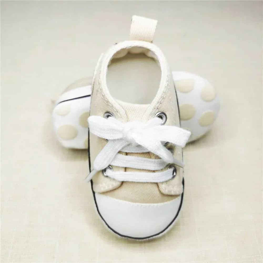 Introduce your little one to the world of walking in style with Canvas Soft-Sole Lace-up Baby First Walkers in Classic Calabash khaki! These charming soft-soled sneakers are designed for your child's comfort and safety as they embark on their first exciting adventures.