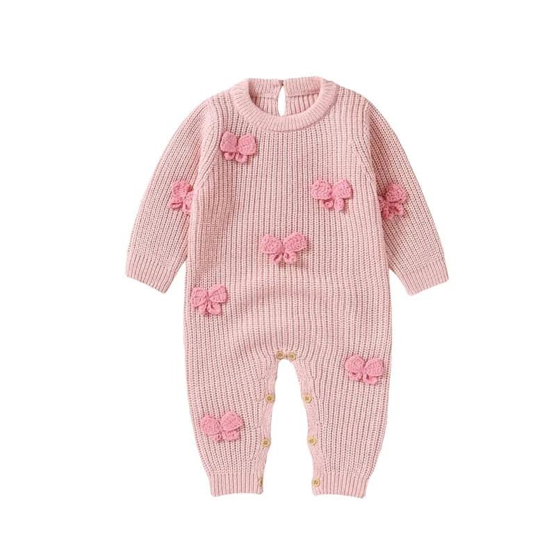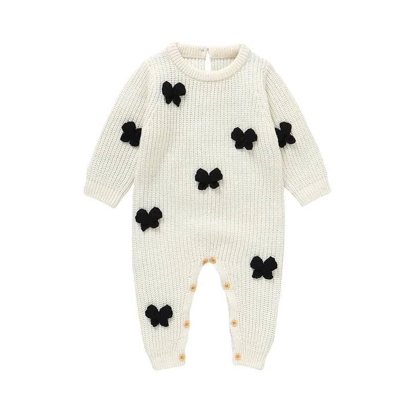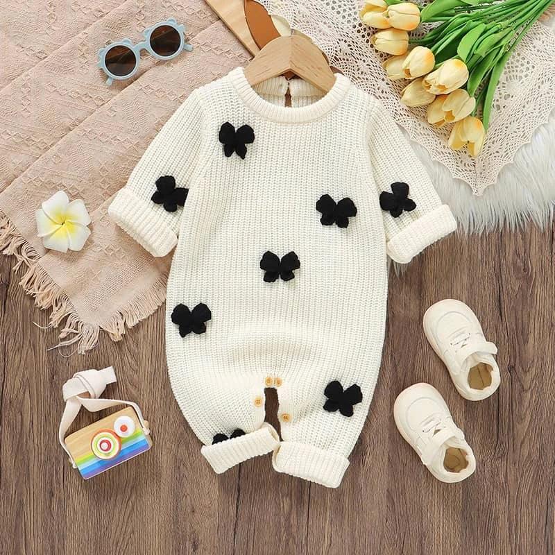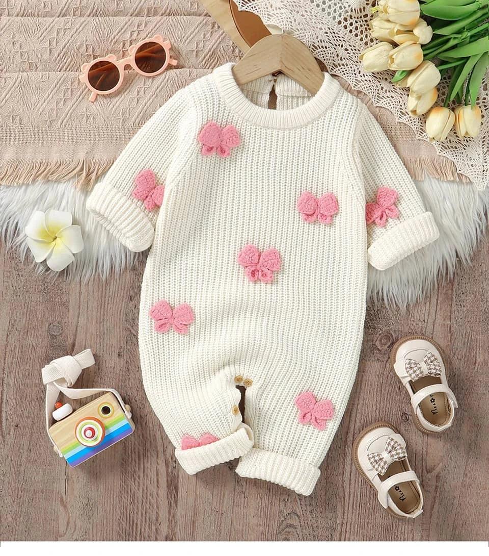 'Bow Baby' Knitted Baby Romper With Crocheted Bows - Cozy Style