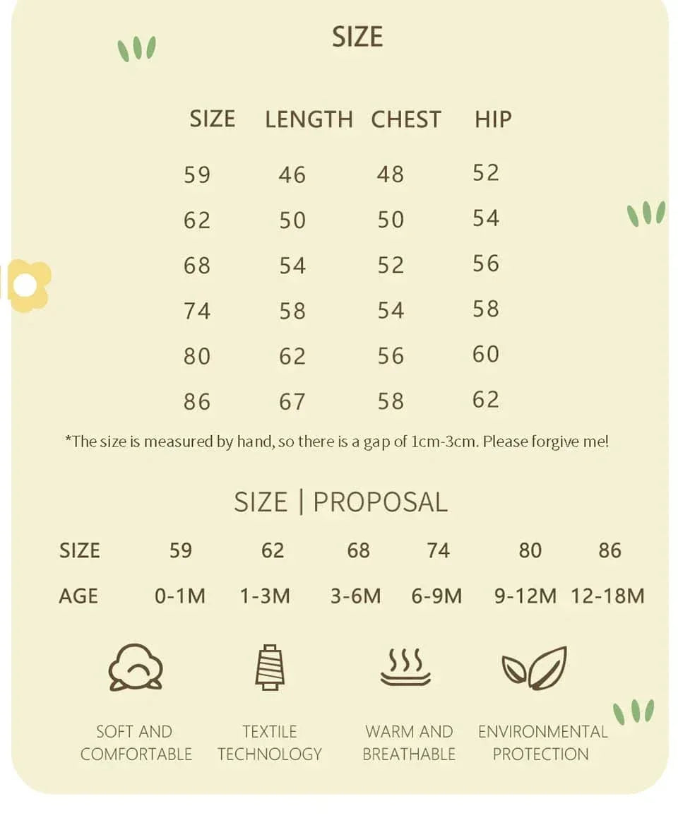 This jumpsuit is true to size and will quickly become a staple in your baby’s wardrobe. The fine craftsmanship and adorable aesthetics ensure that it holds up well through all the fun and exploration your baby will partake in.