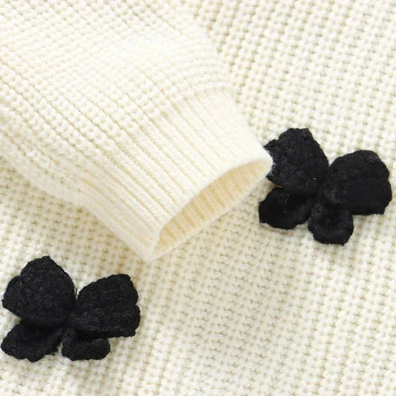 Introducing the "Bow Baby" Long Sleeve Knitted Baby Romper, your little one’s new favorite outfit! Available in three charming color options—classic black and white, sweet soft pink and white, and a delightful pink-on-pink with crocheted butterflies—this baby knitted romper combines style and comfort effortlessly.