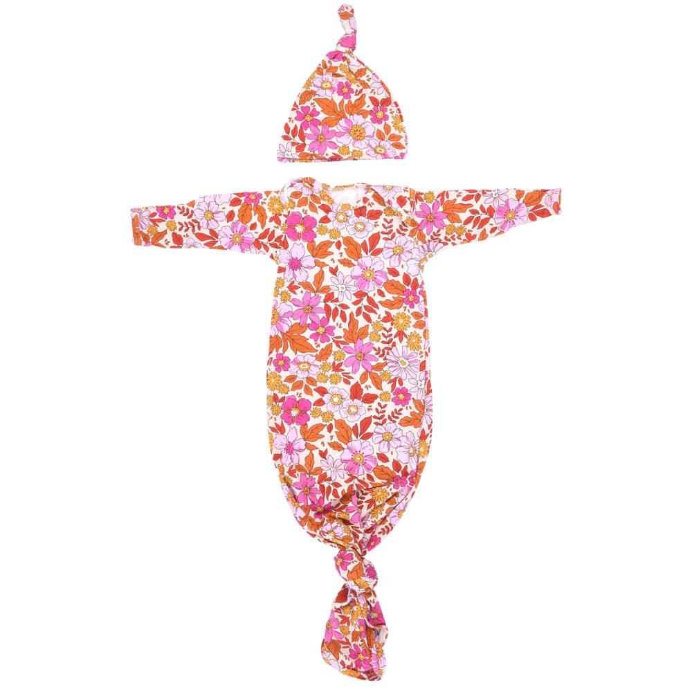 Three Little Tots Knotted Newborn Baby Gown Floral Print