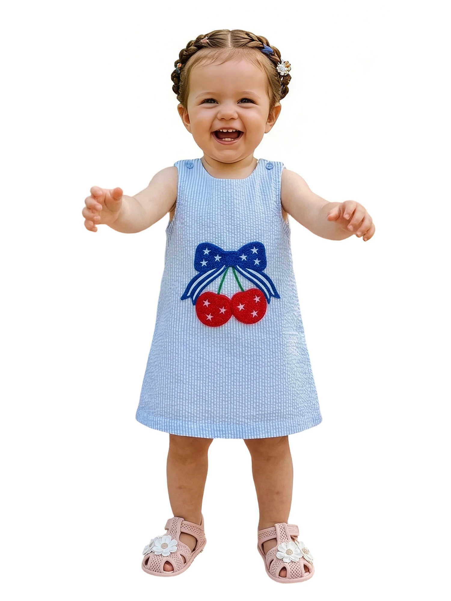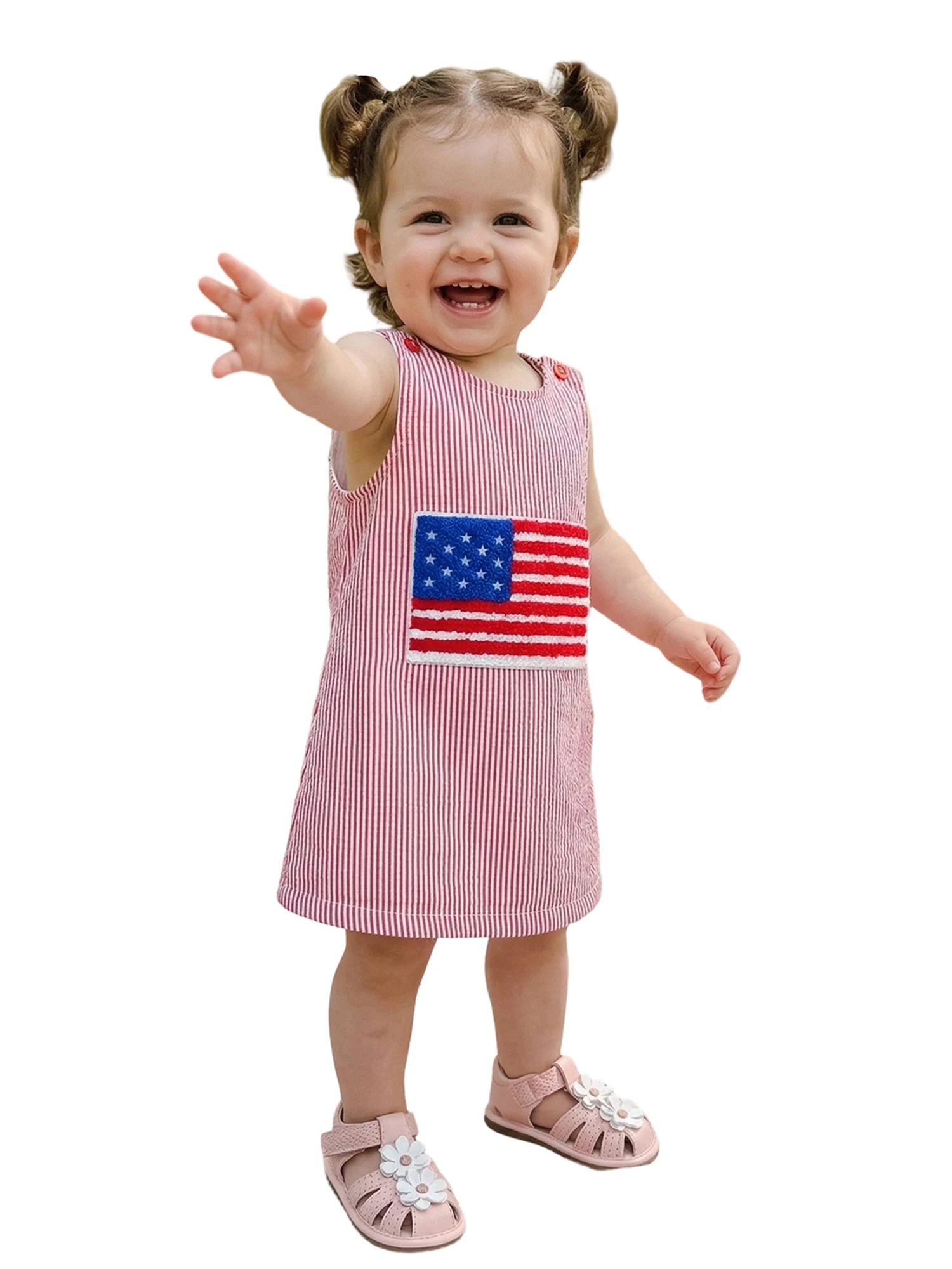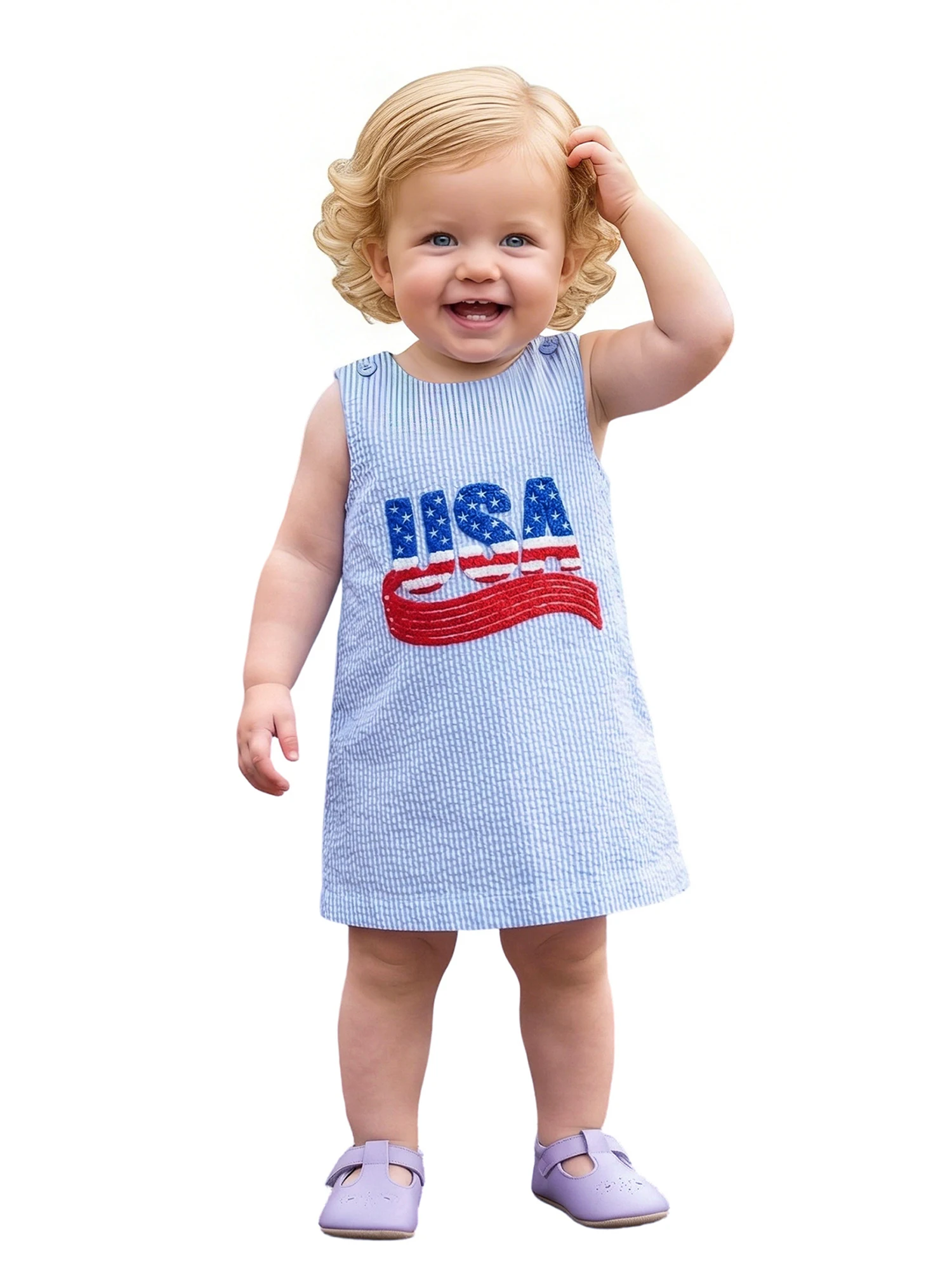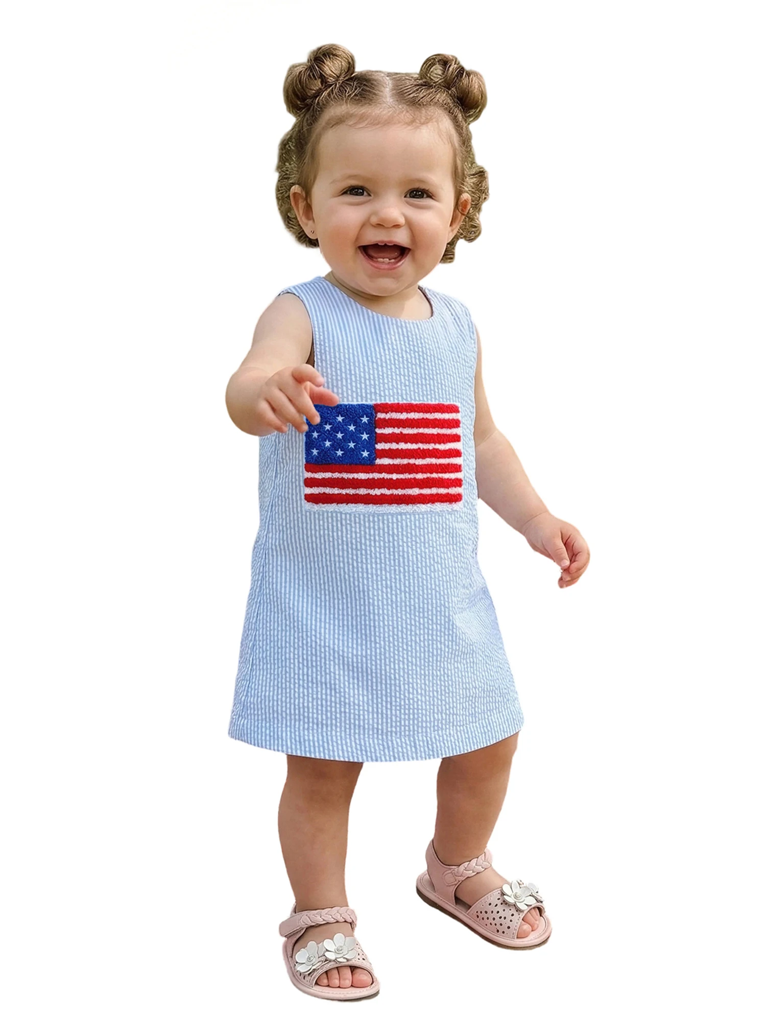 Little Girls Summer Dress in Patriotic Seersucker Style