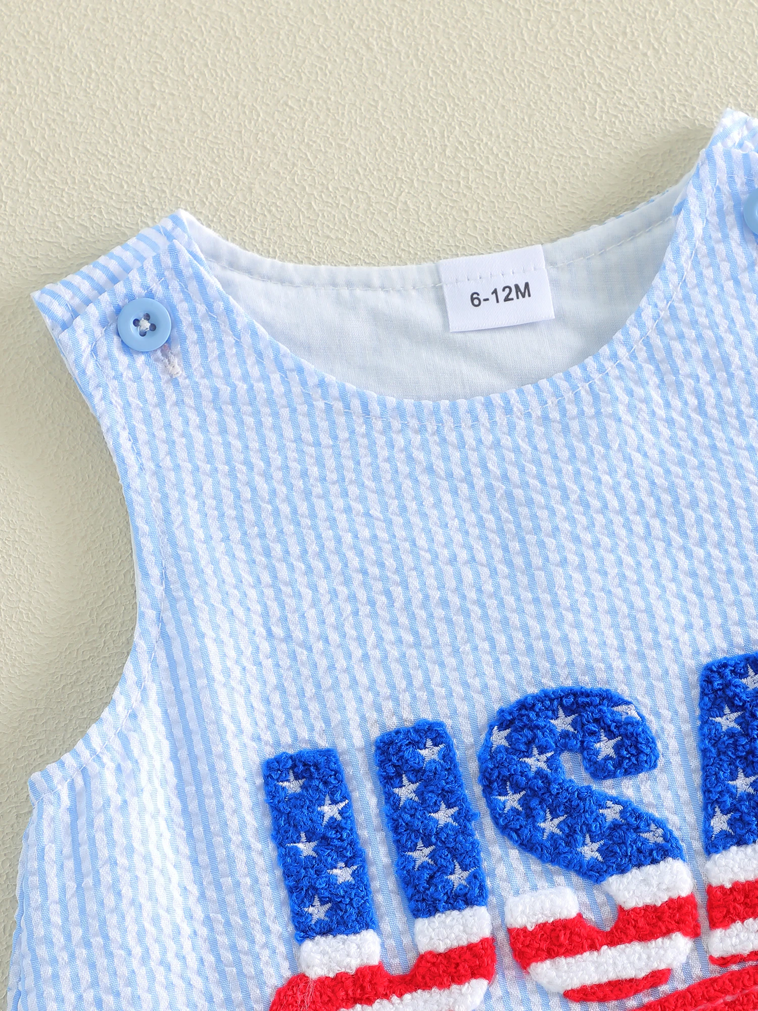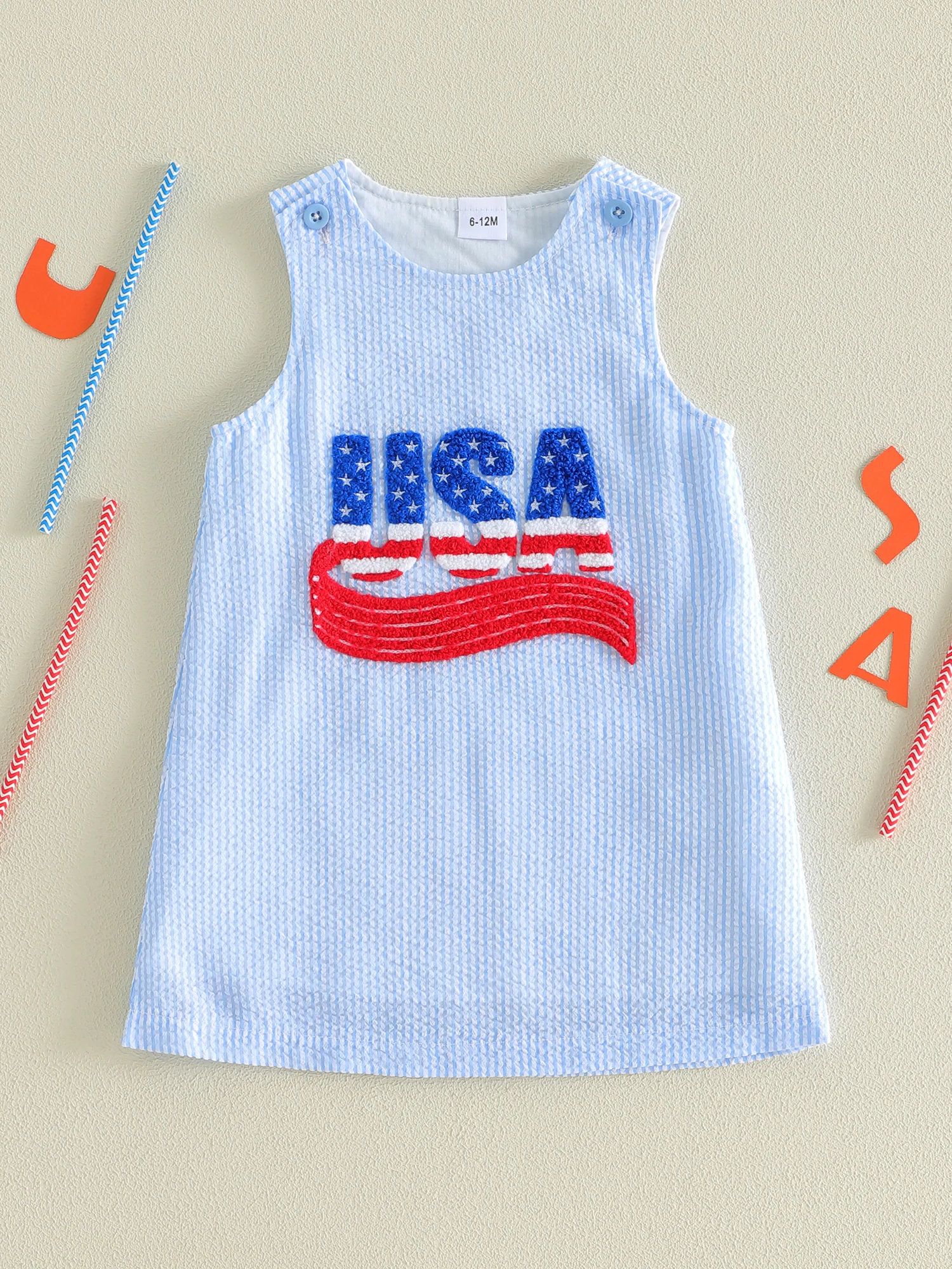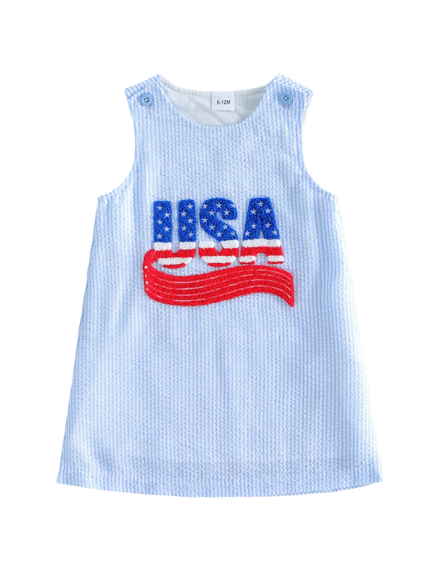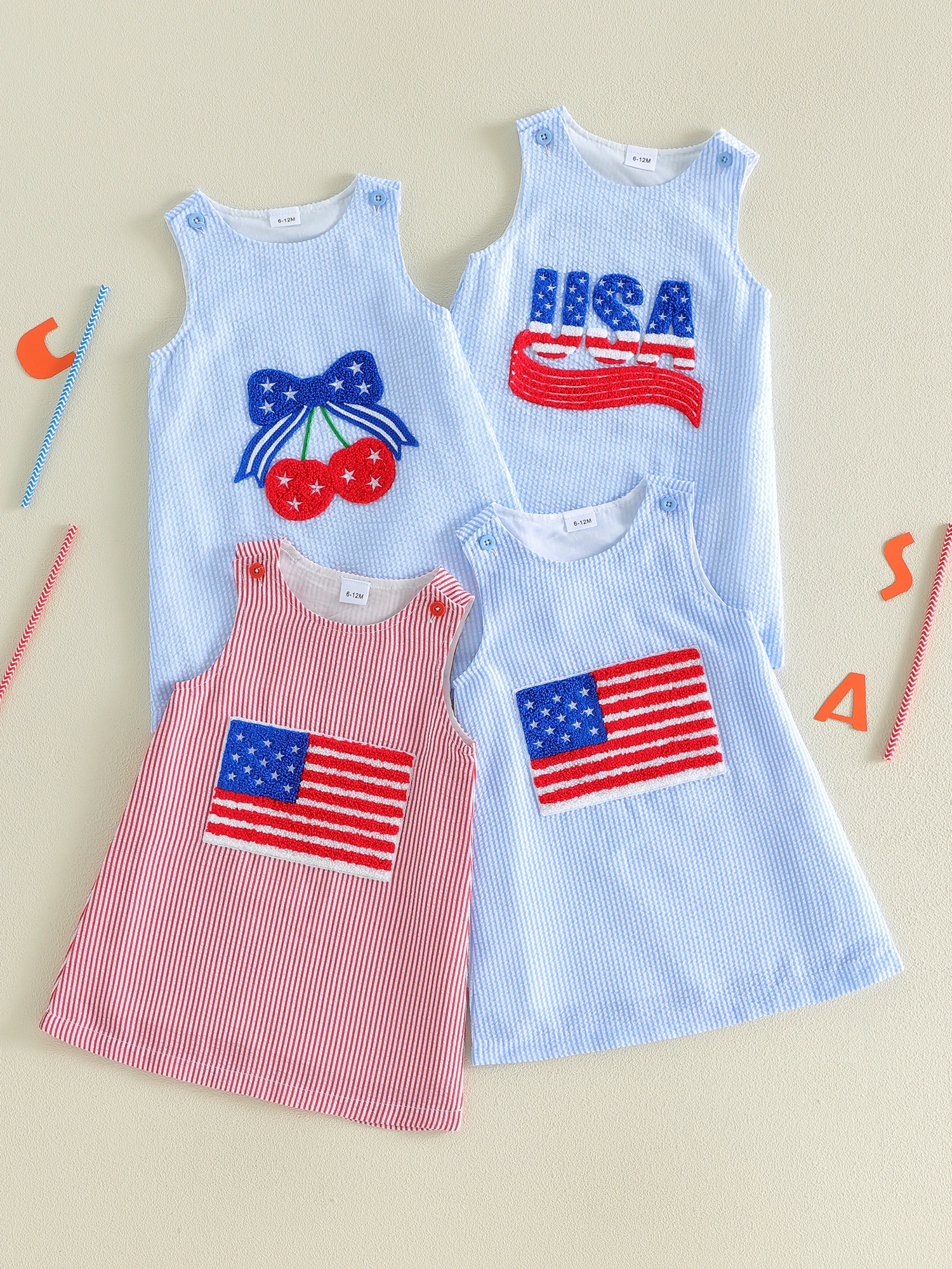 Little Girls Summer Dress in Patriotic Seersucker Style