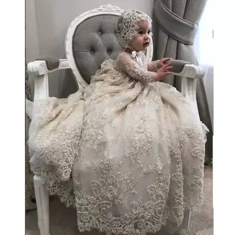 Experienced artisans craft every gown. Quality control checks ensure lasting beauty. This luxury lace christening gown can be handed down. It receives attention at special occasions and traditional ceremonies.