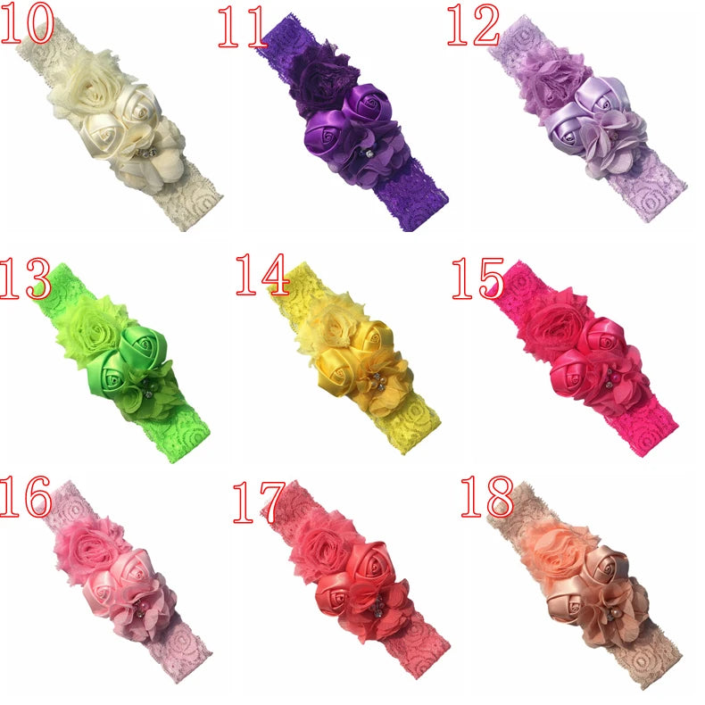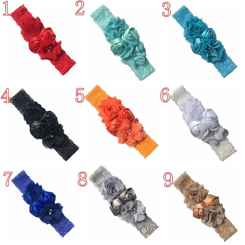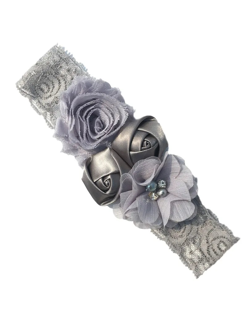 "Natalia" Handmade Chiffon Flower Rhinestone Lace Headband—23 Colors