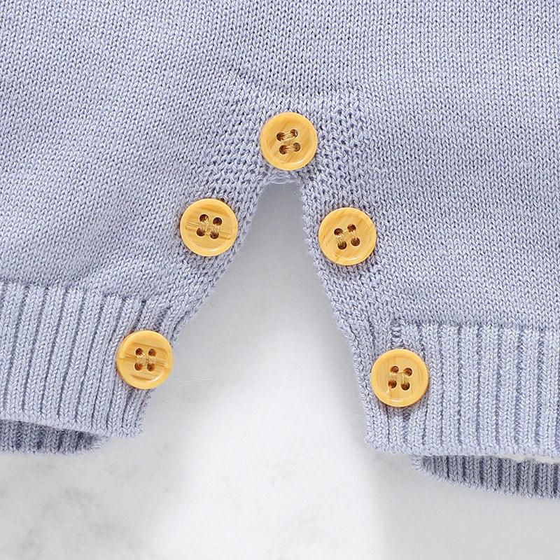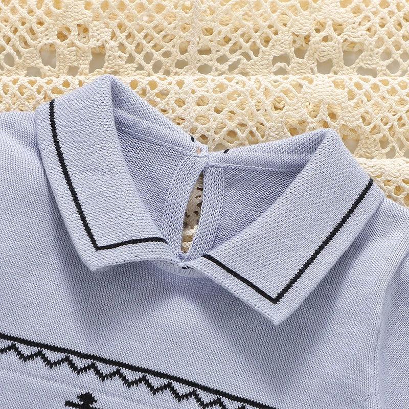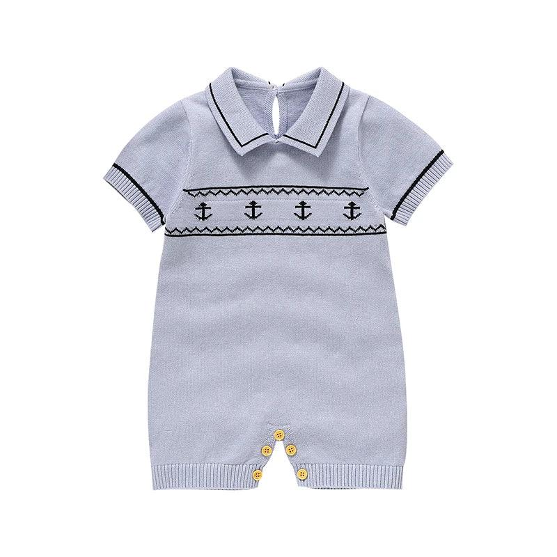 The thoughtful design features an adorable anchor crocheted design with a classic turn-down collar and convenient buttons at the legs, making diaper changes a breeze. Dress your baby in this adorable romper for family gatherings, playdates, or special occasions. Pair it with a cozy cardigan and tights during cooler weather for a complete look.