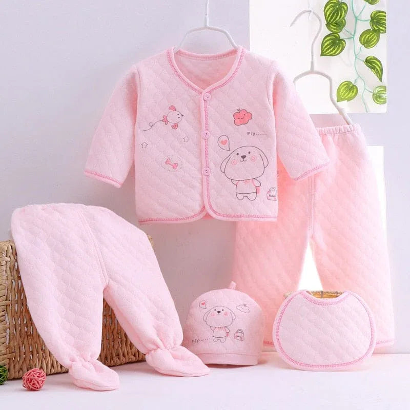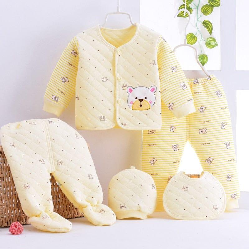 Looking for a thoughtful baby shower gift? The 5PC Quilted Layette Set for Newborns combines style with comfort. This newborn quilted layette set features soft cotton fabrics that are gentle on delicate skin. Each piece is designed with care for newborns, providing warmth and a cozy feel.