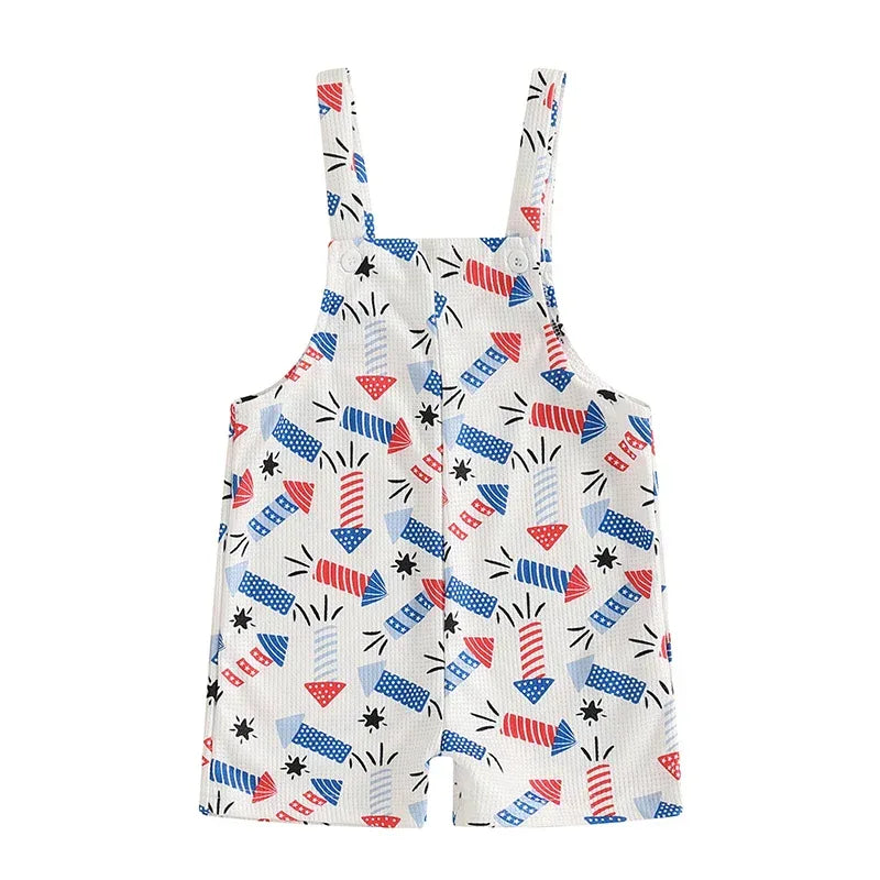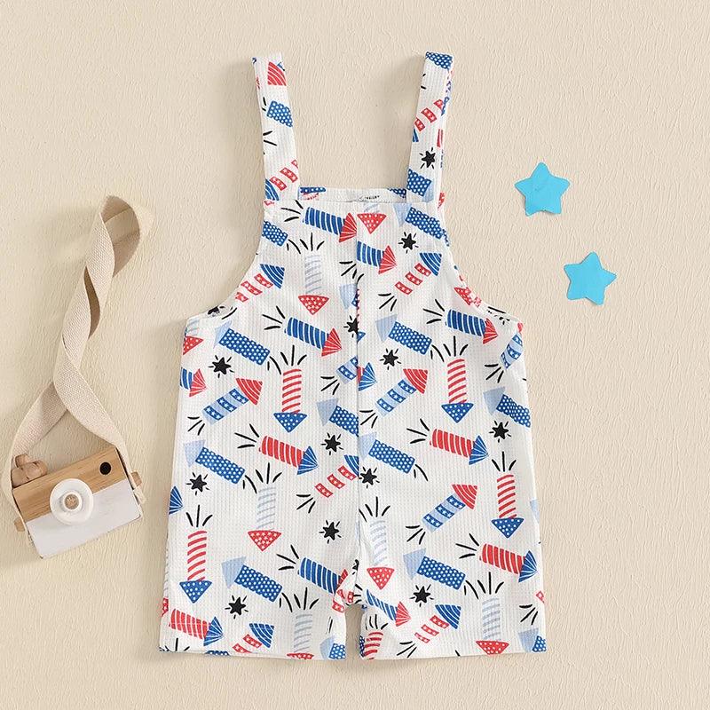 Patriotic Baby Overalls Set - Red, White & Blue Fireworks