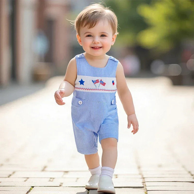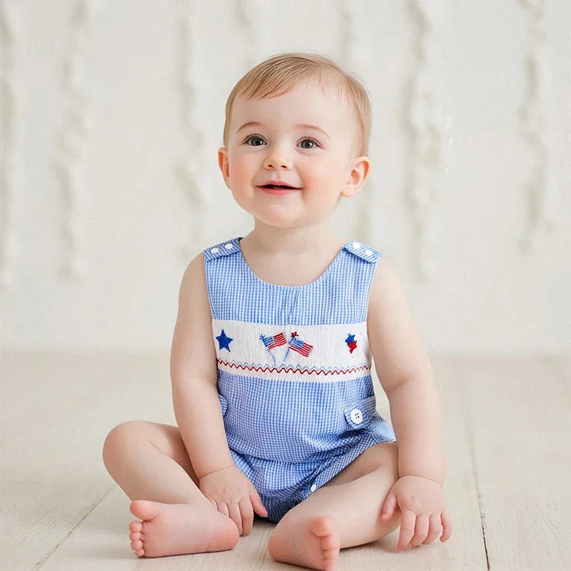 Patriotic Baby Romper with Flag Embroidery - The Palm Beach Baby
