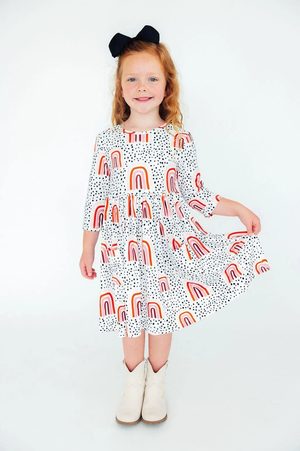 "Peach Rainbow" 3/4 Sleeve Pocket Girls Twirl Dress