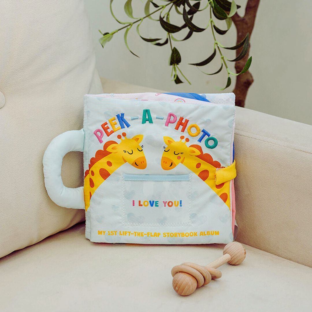 Introduce your baby to the wonderful world of reading with our soft cloth peekaboo storybook album designed for ages 0-3. Think peek-a-boo with family photos, where little ones discover you behind interactive flaps! This fabric book combines the safety and comfort of cloth materials with the excitement of discovering loved ones. Each lovingly crafted page features a delightful lift-the-flap surprise, revealing five hidden photo pockets for: Mommy, Daddy, Grandma, Grandpa, & Loved One.