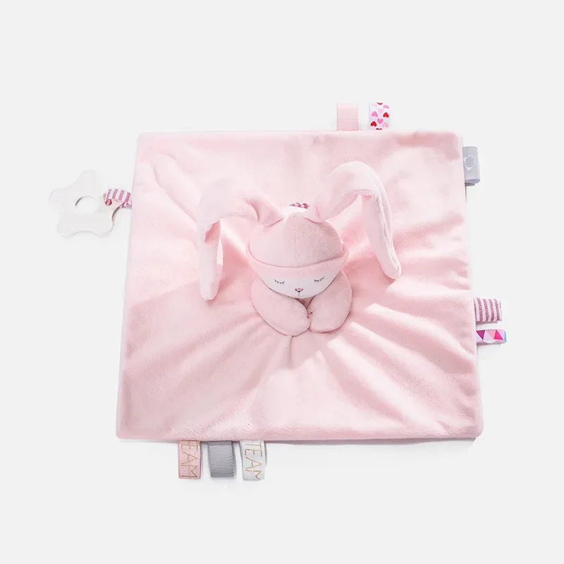 The 'Baby Rabbit' pink security blanket brings gentle support for routines, offering peace of mind for parents. Babies can self-soothe by hugging or holding this adorable blanket, finding comfort at home or on the go.