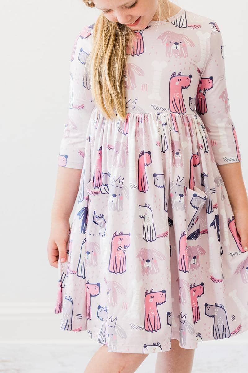 Puppy Party Dress for Girls Pink Twirl Pocket Dress