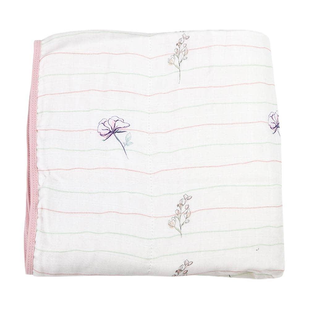 Flowers and Pink Oversized Bamboo Muslin Quilted Blanket