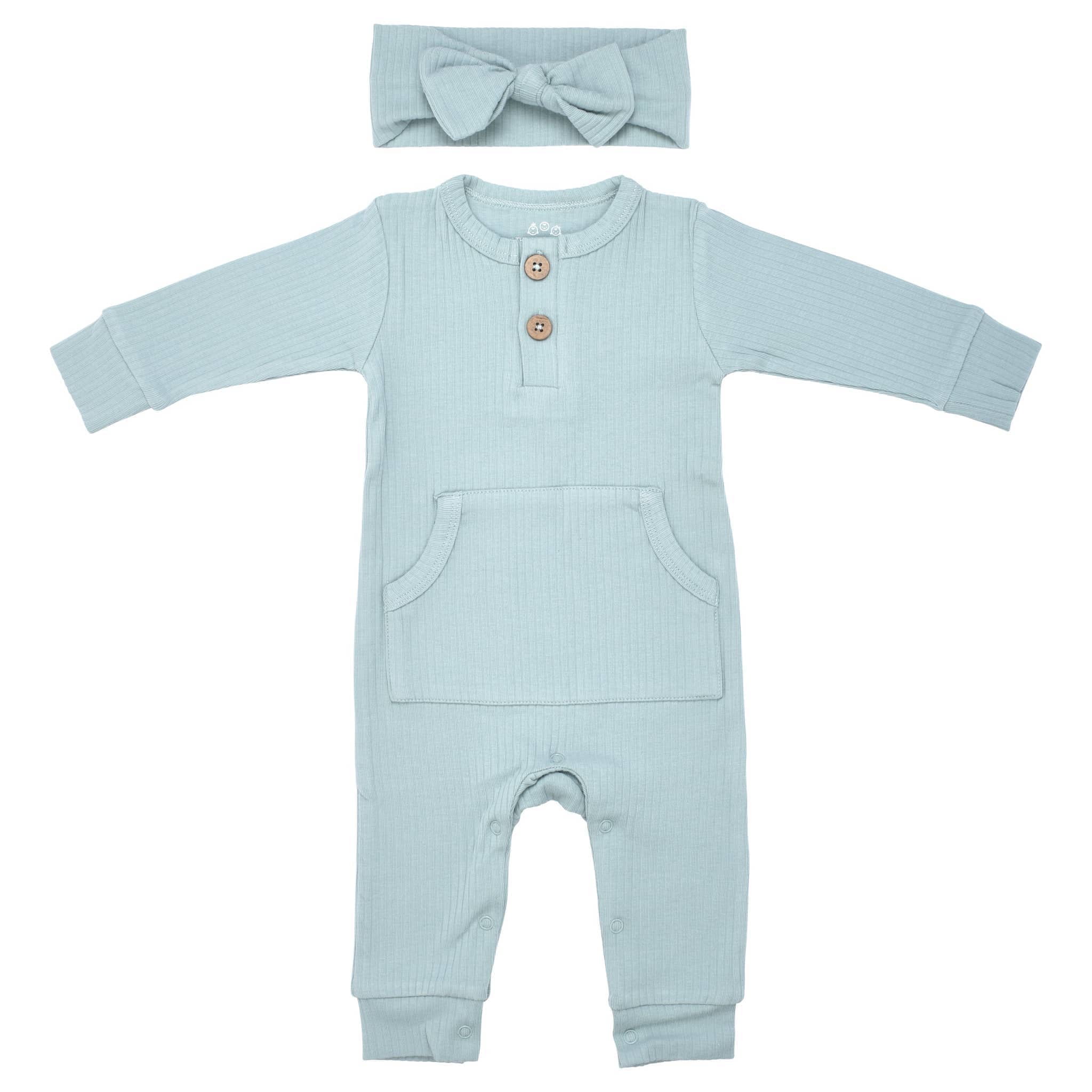 Choose the Robbins Egg shade for a fresh, stylish look. The stretch in the ribbed fabric allows babies to crawl, sit, or explore with ease. The ribbed baby playsuit with pockets is a top choice for parents looking for both style and function. Give as a gift or add it to your little one’s wardrobe.