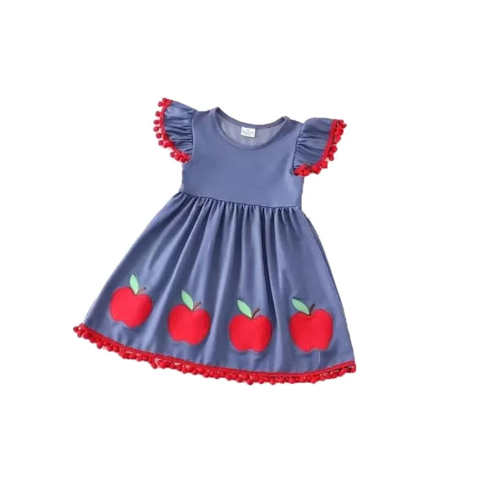 'School Cutie' School Themed Girls Dress With Cute Pom-Pom Trim