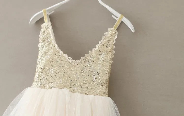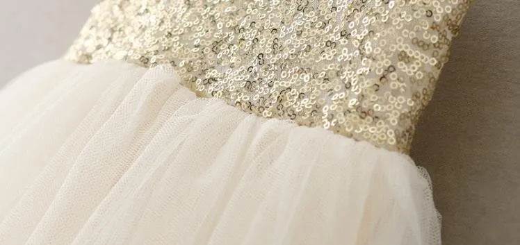 'Sequined Sweetie' Shimmering Gold Tulle Party Dress