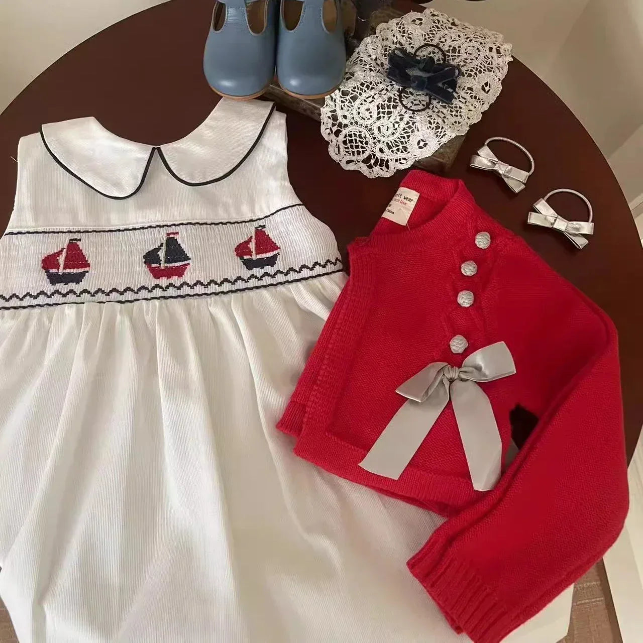 Crafted from a breathable cotton blend, this dress ensures your girl stays cool during warm-weather outings. The hand-embroidered sailboats on the front add a whimsical touch that is sure to turn heads at any gathering.