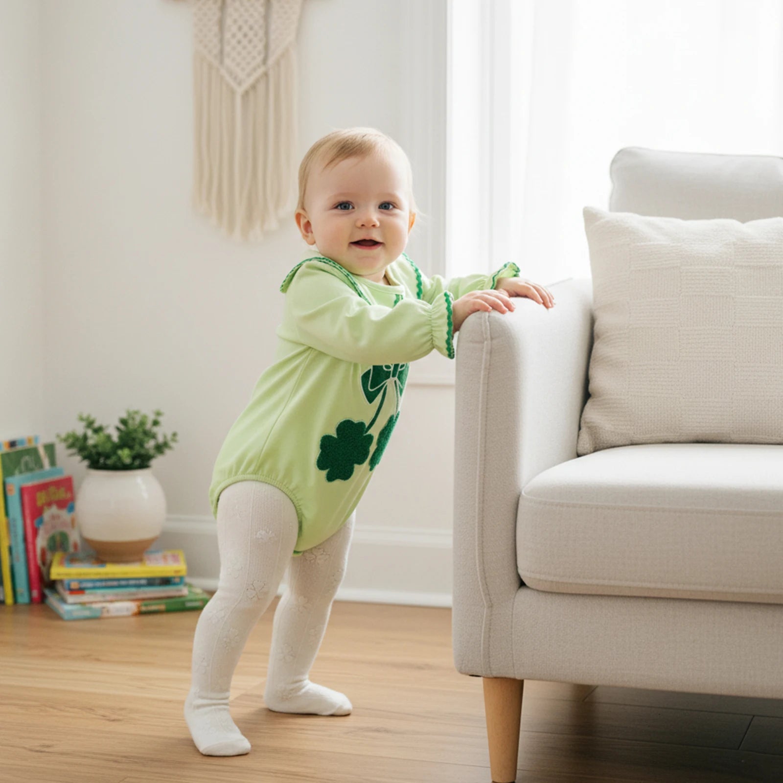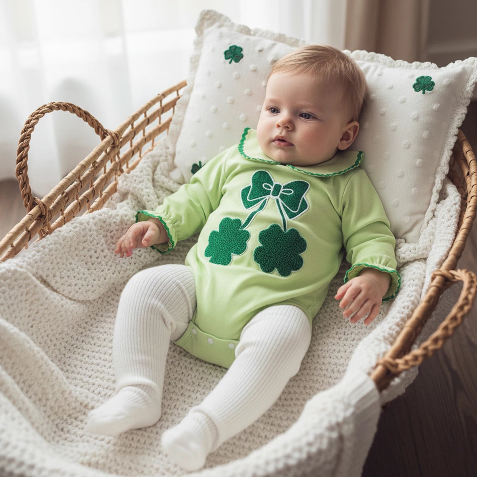 Give your little one the softest, cutest look with this bubble. The shamrock embroidered baby bubble is ready for playtime, parties, and all those special moments.