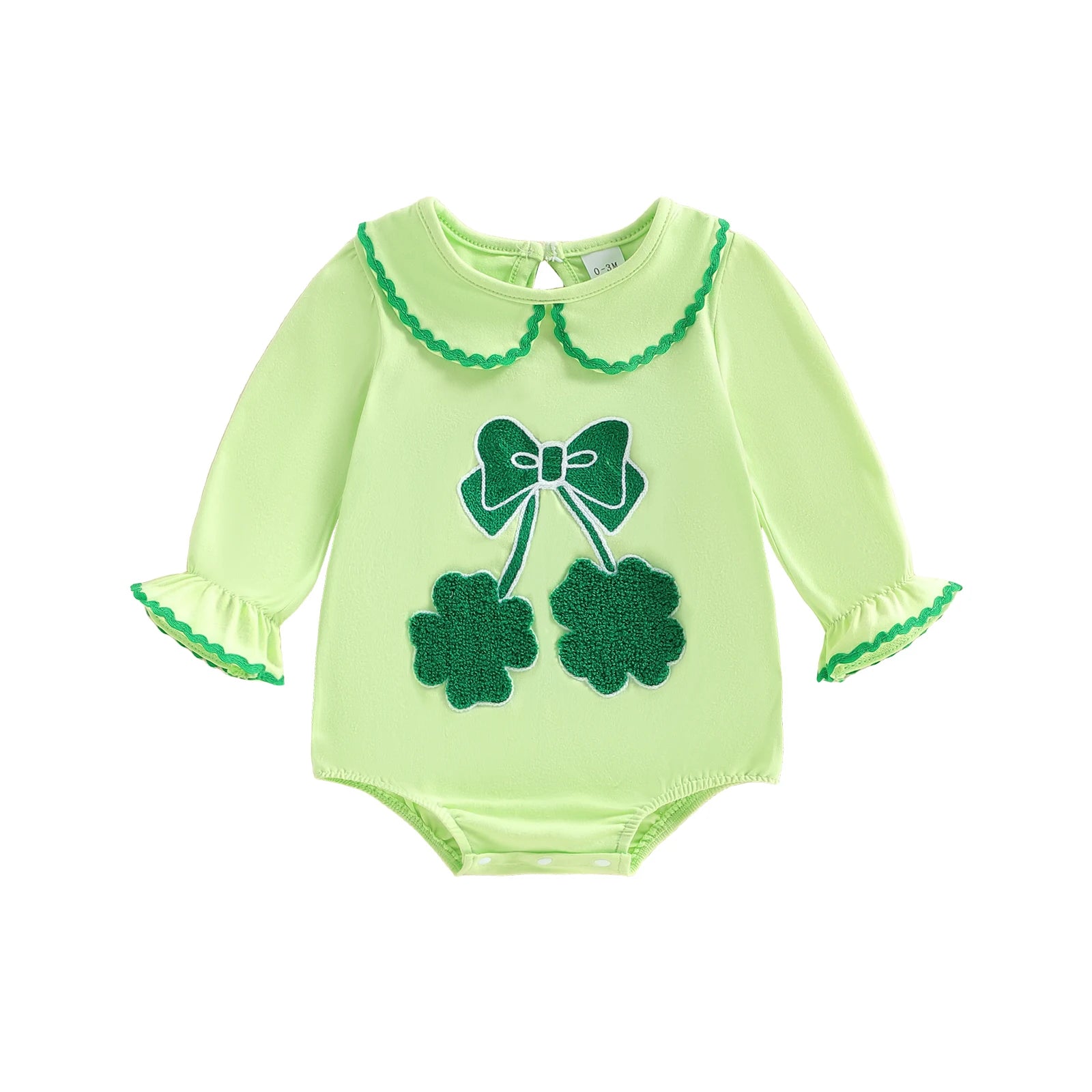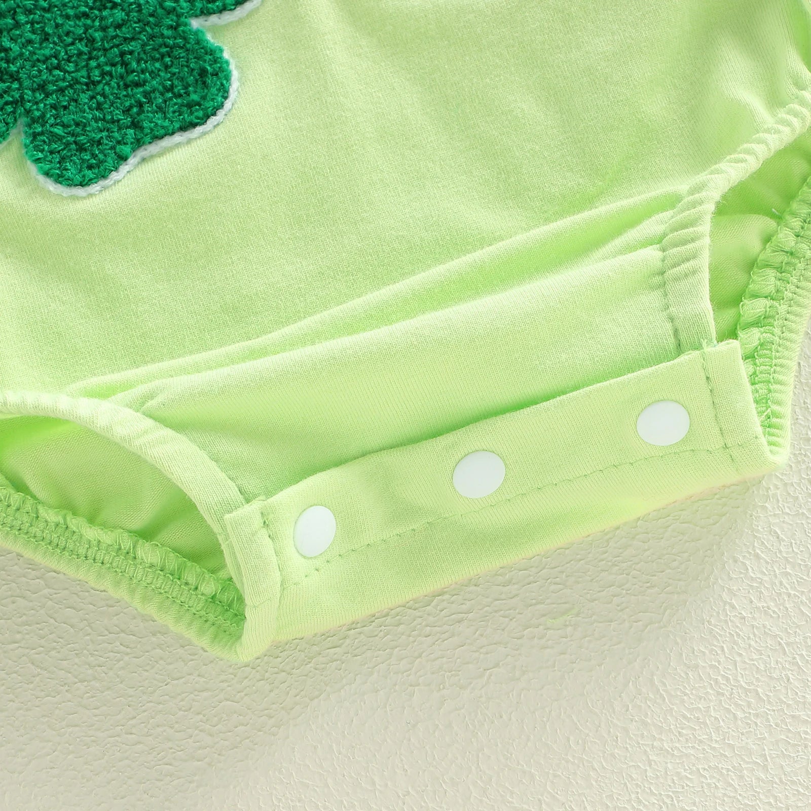 Cute shamrock and bow details help this romper stand out. It makes a fun pick for St. Patrick's Day, photo shoots, or family gatherings. The embroidered motifs are high-quality and will stay looking new, wash after wash.