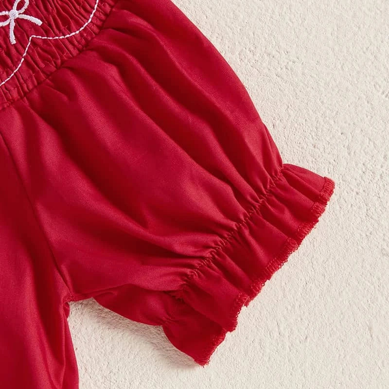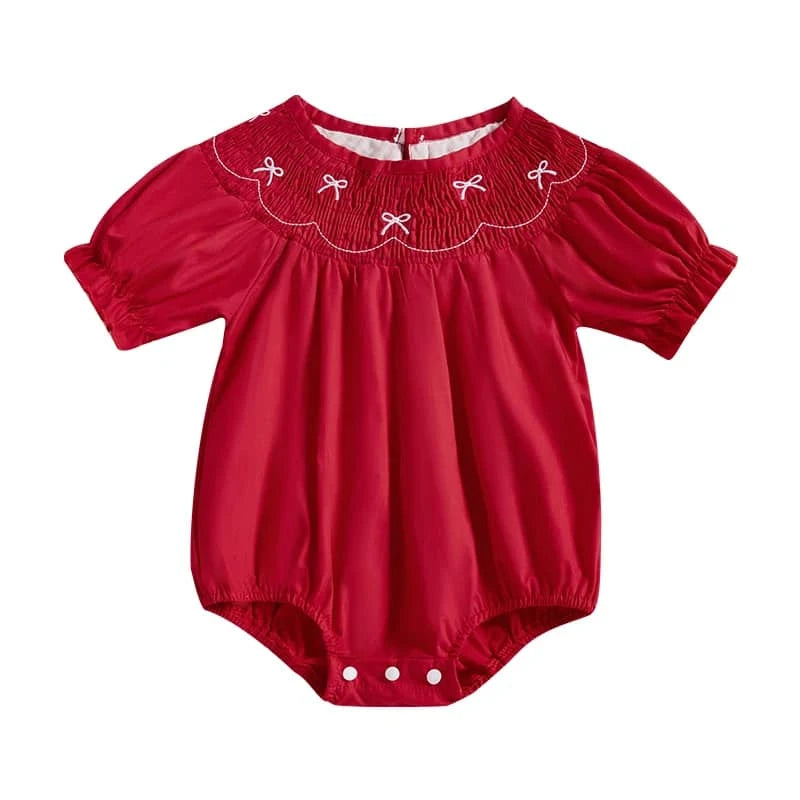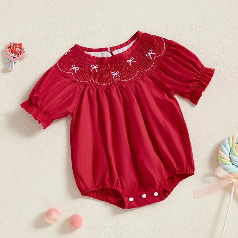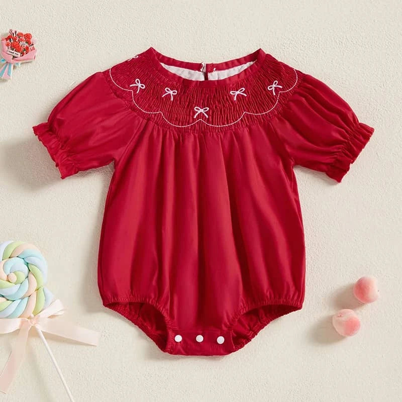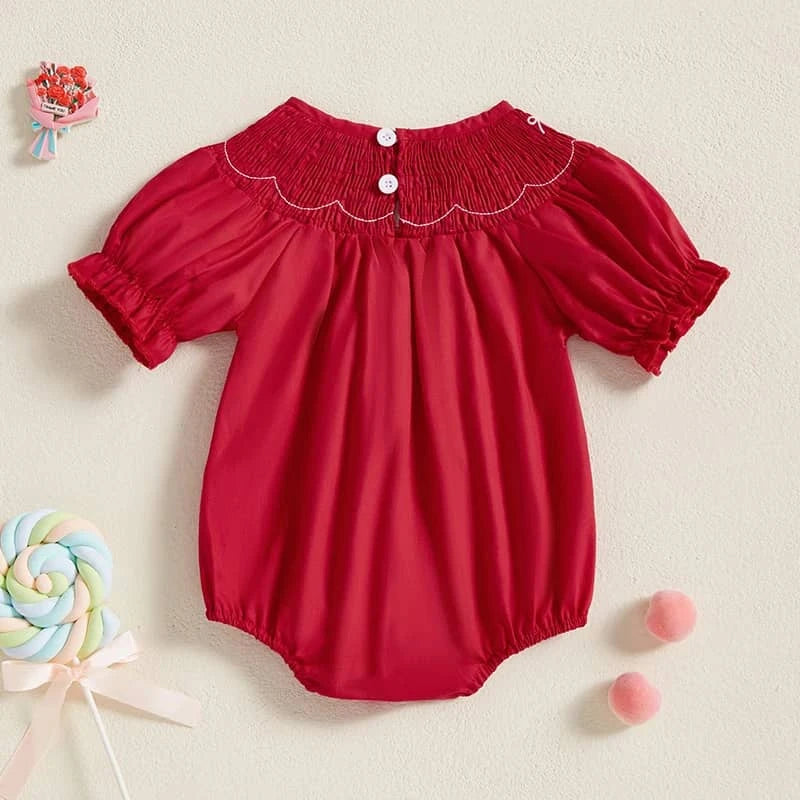 Smocked Baby Bubble Romper in Red for Girls