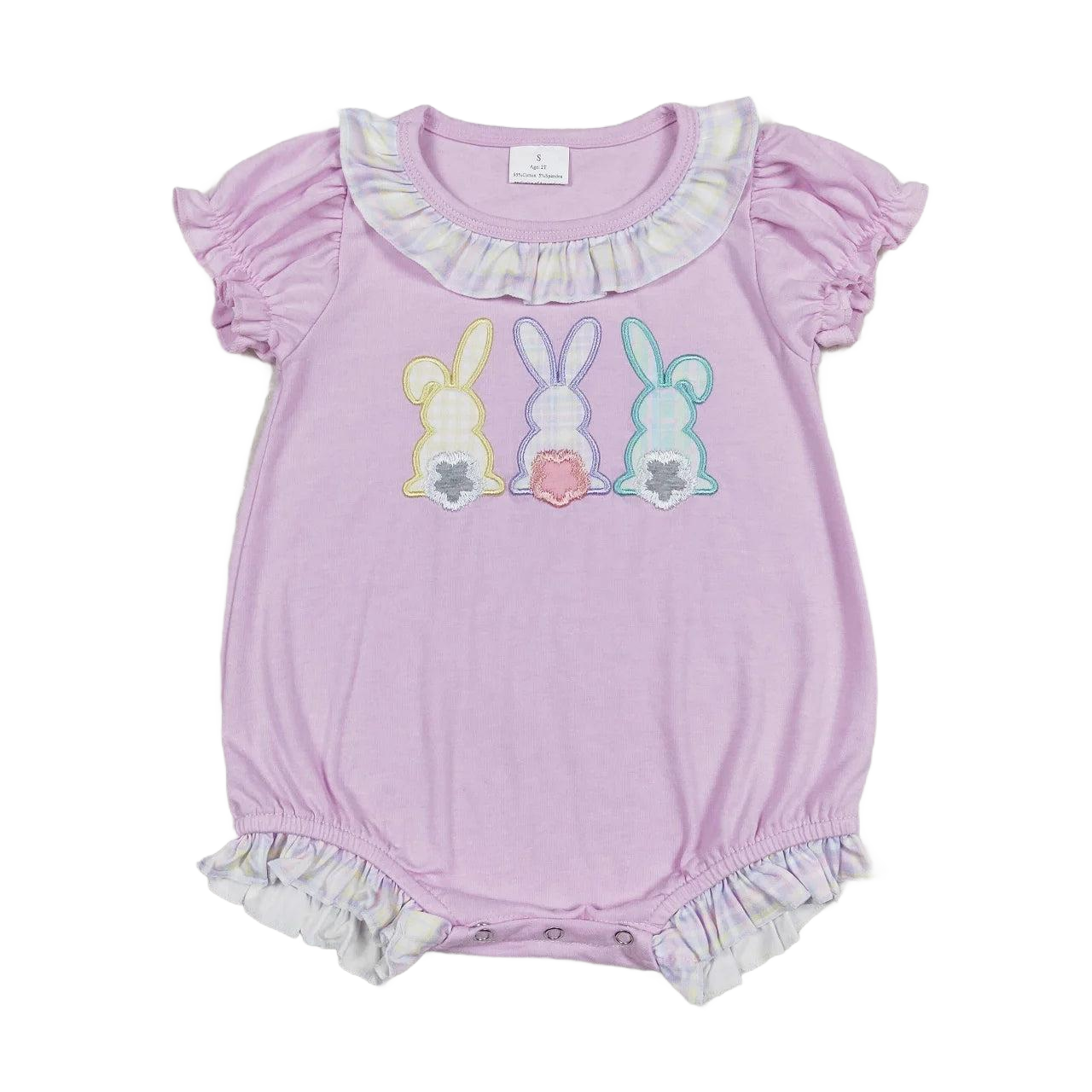 Three Little Bunnies Spring Romper with Cute Bunny Applique