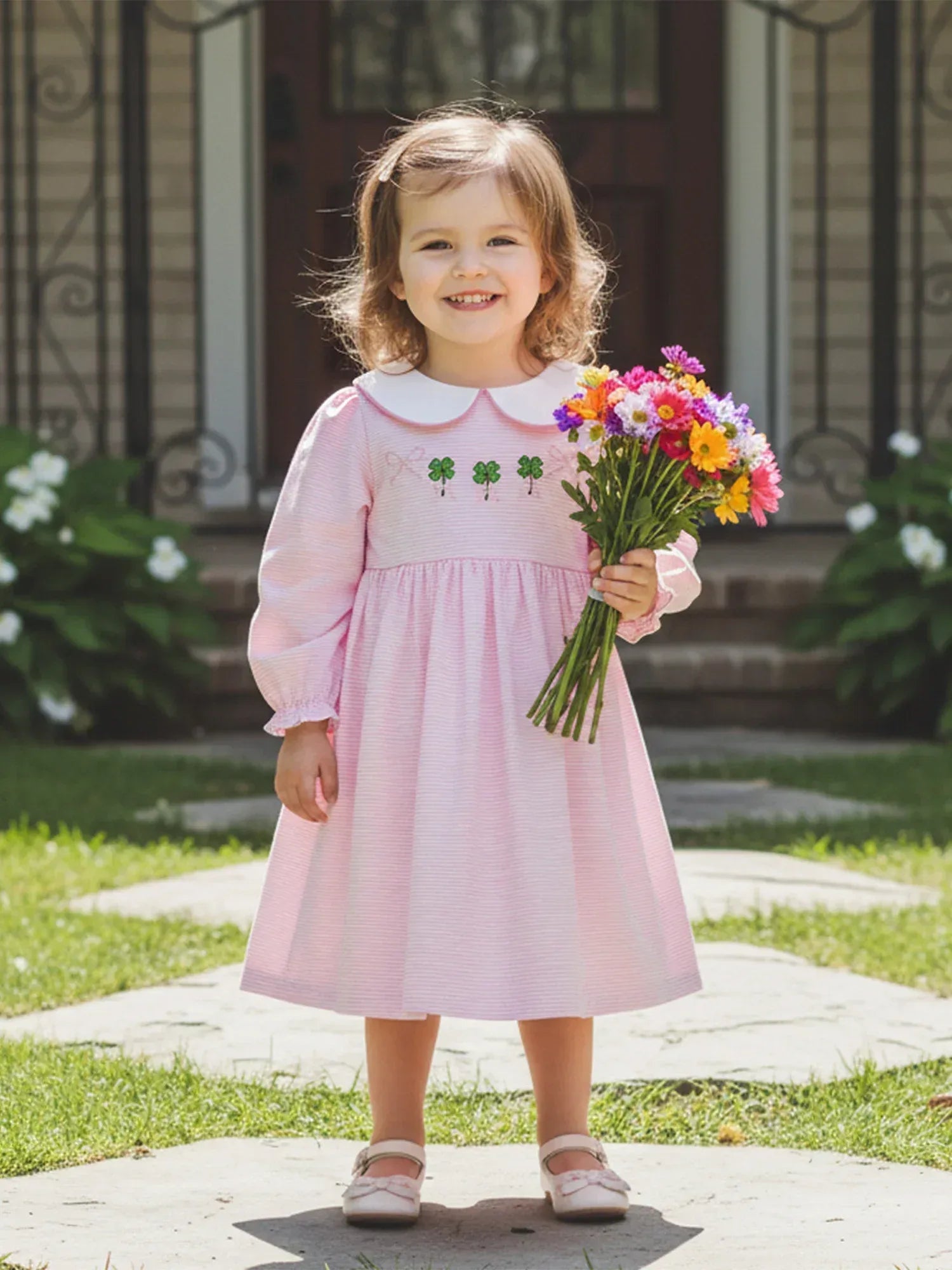 • Special Details: Shamrock embroidery, Peter Pan collar, gentle pastel shades