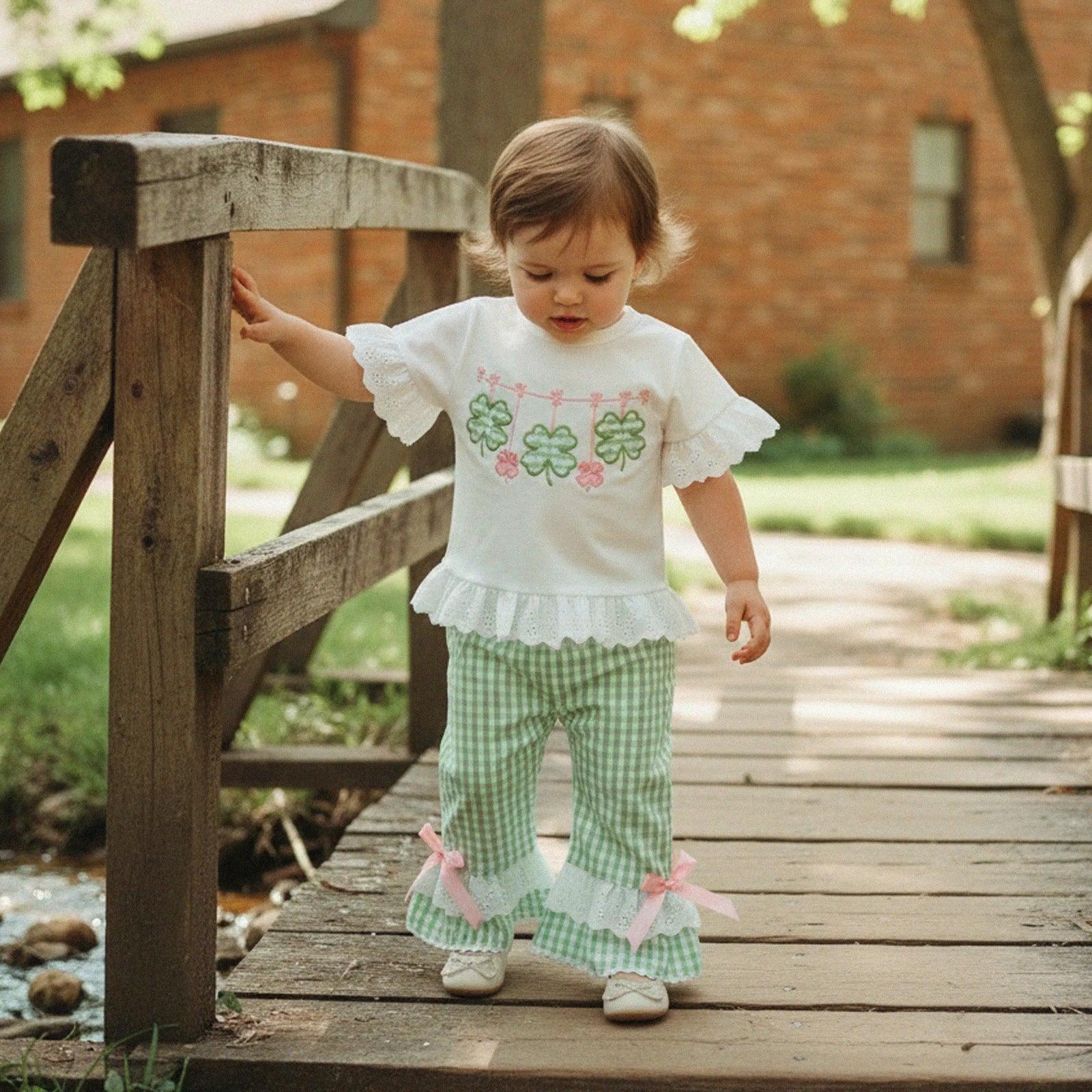 St Patrick's Day Pants Outfit: 2-Piece Set for Little Girls