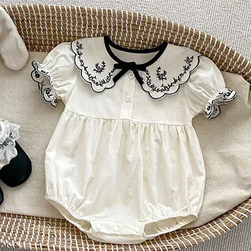 The short sleeves and playful design of these rompers ensure that your little one stays cool and comfortable, while still looking adorable. Whether you're capturing photographs to cherish or enjoying a sunny day at the park, the "Summer Cuteness" Rompers are the perfect choice to showcase your child's personality.