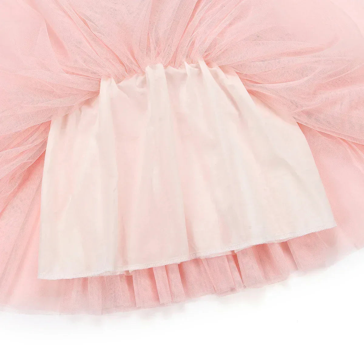 Crafted with a tailored bodice and a smocked back, this dress ensures a comfortable and fit that allows for easy movement. The heart-shaped neckline adds a touch of elegance while the flowing cascading tulle skirt creates a whimsical look that she'll love to flaunt. Whether it's a birthday party, wedding, or a fun-filled outdoor event, this dress is the ideal choice for any occasion.