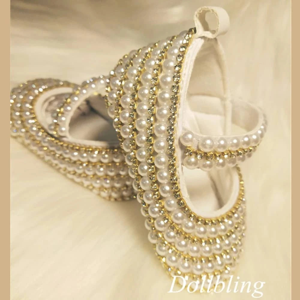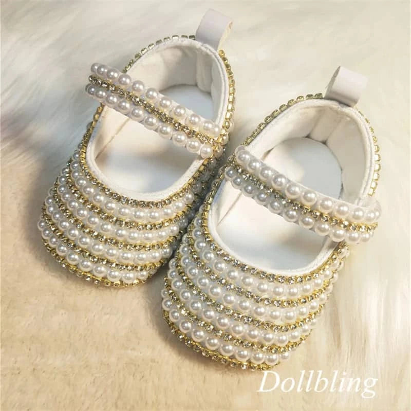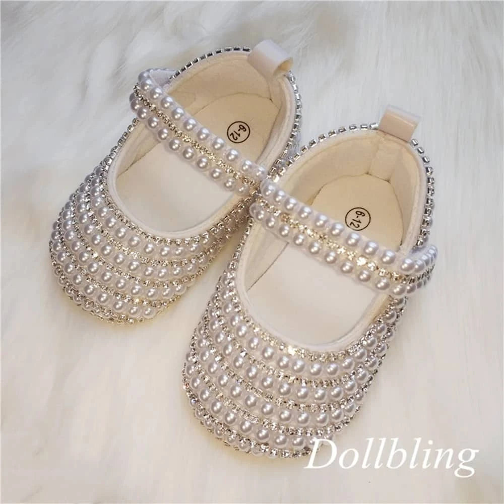 Tabitha Beaded Baby Pre-Walker Shoes with Pearl Detailing