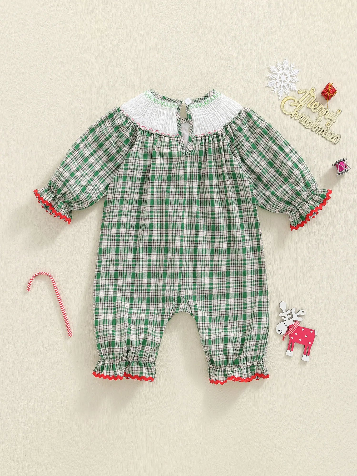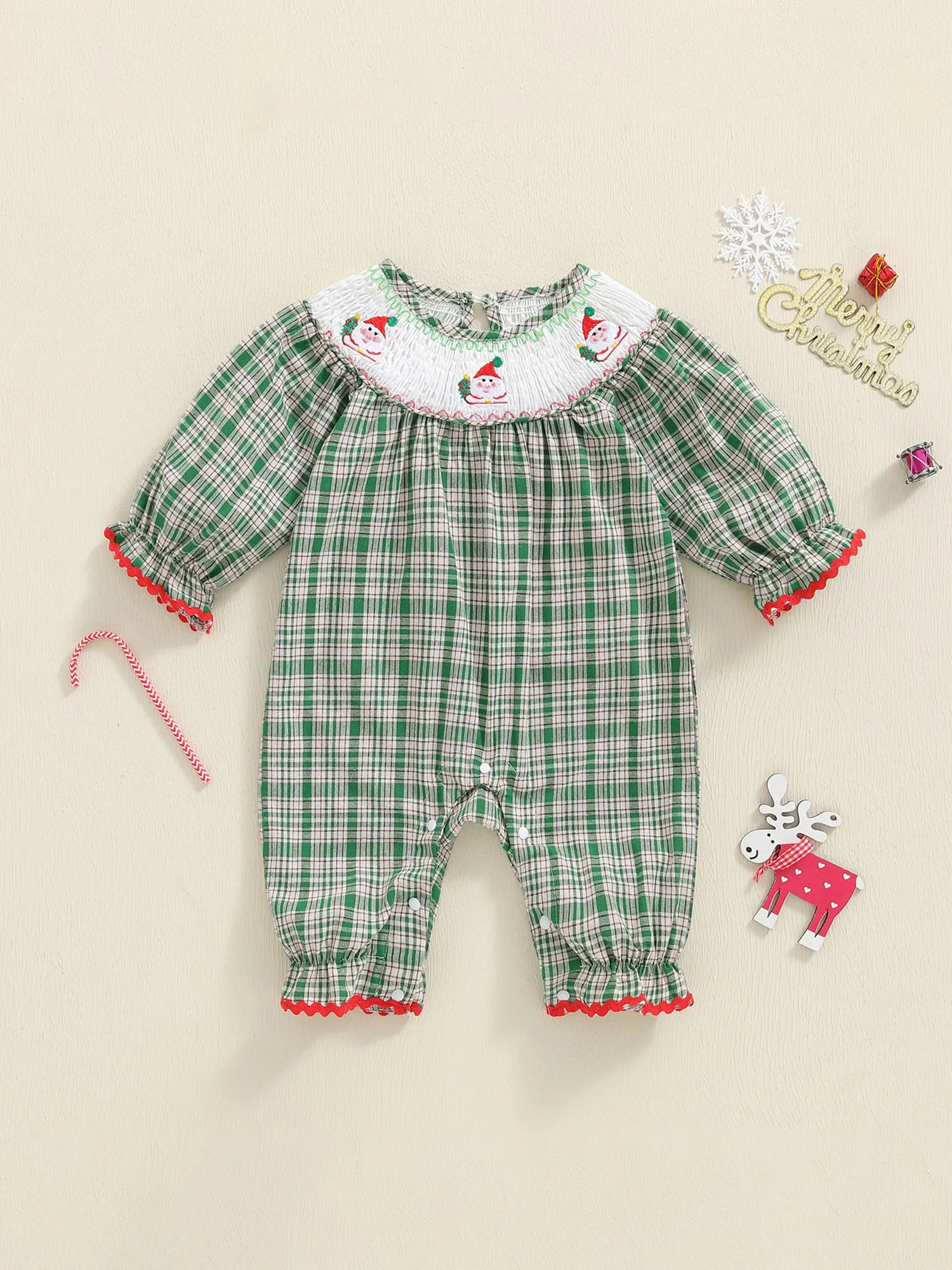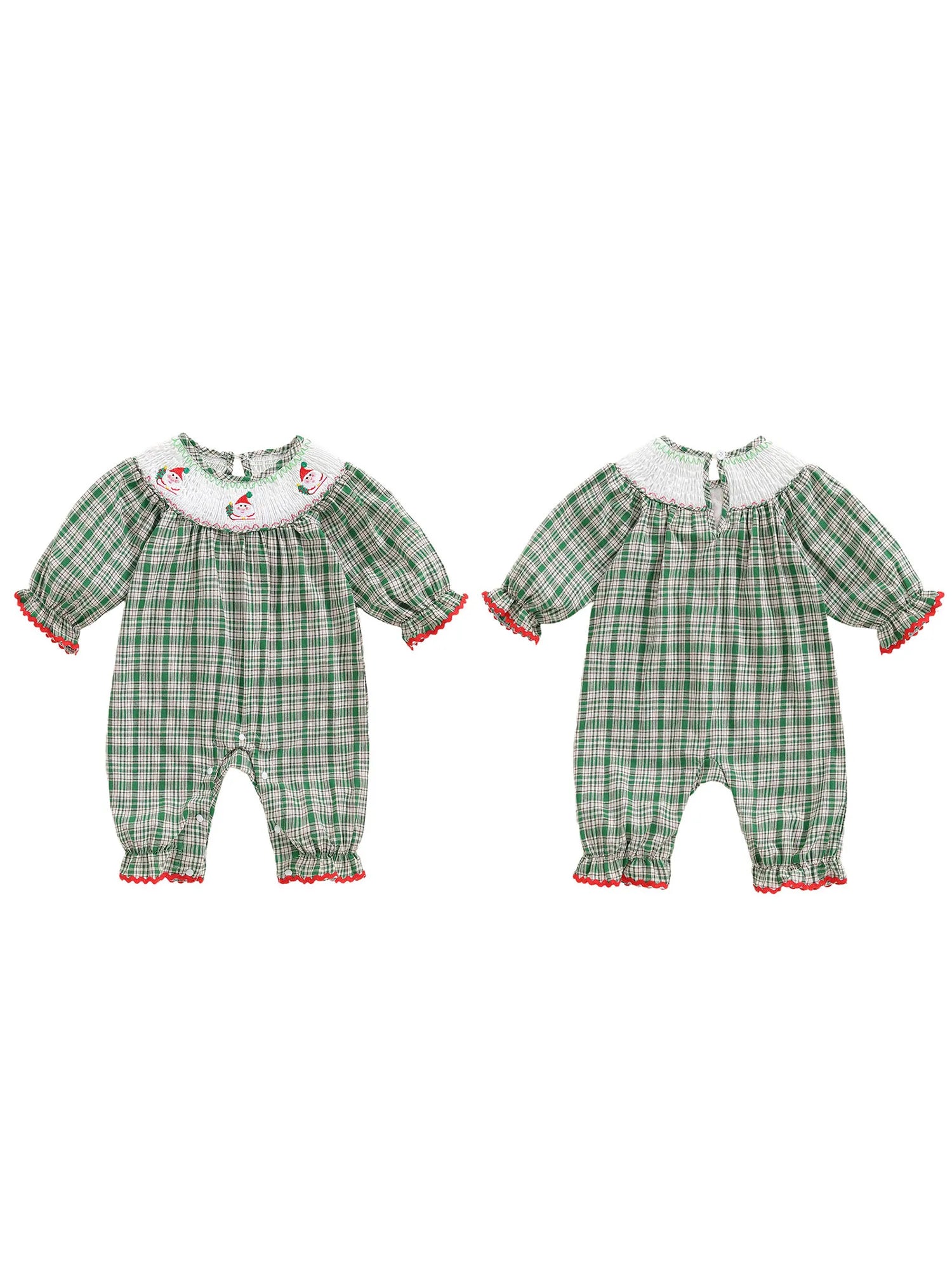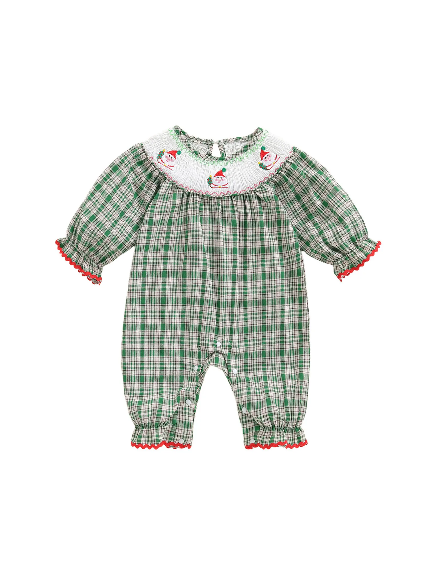 "Tartan Santa" Smocked Long Sleeve Bubble Romper