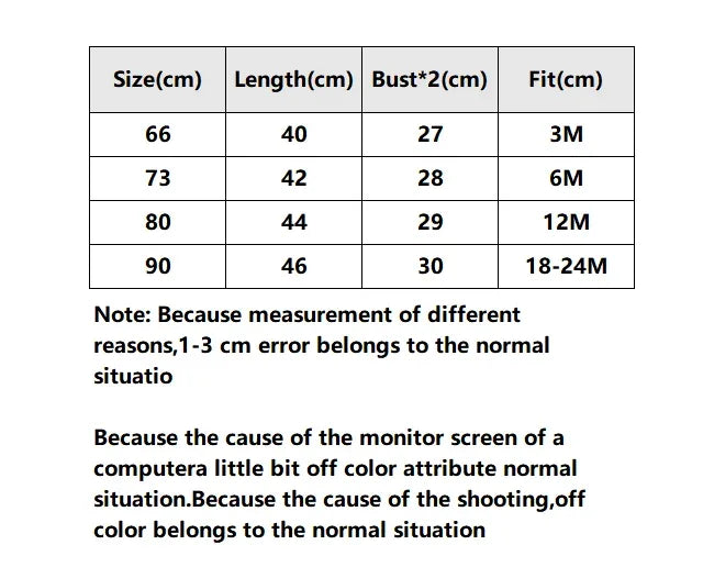 - Sizes: 3M, 6M, 12M, 18M, 24M