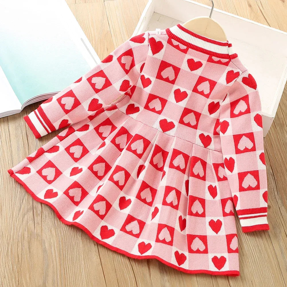 Get ready for cuteness overload! The 'Hearty Party' Valentine's Day Knit Little Girls Casual Dress is all about fun and cozy style. This Valentine's Day dress for little girls makes every holiday extra special. The soft knit fabric feels gentle on your child’s delicate skin. Your little one can move freely, whether it’s a party or a casual day at home.