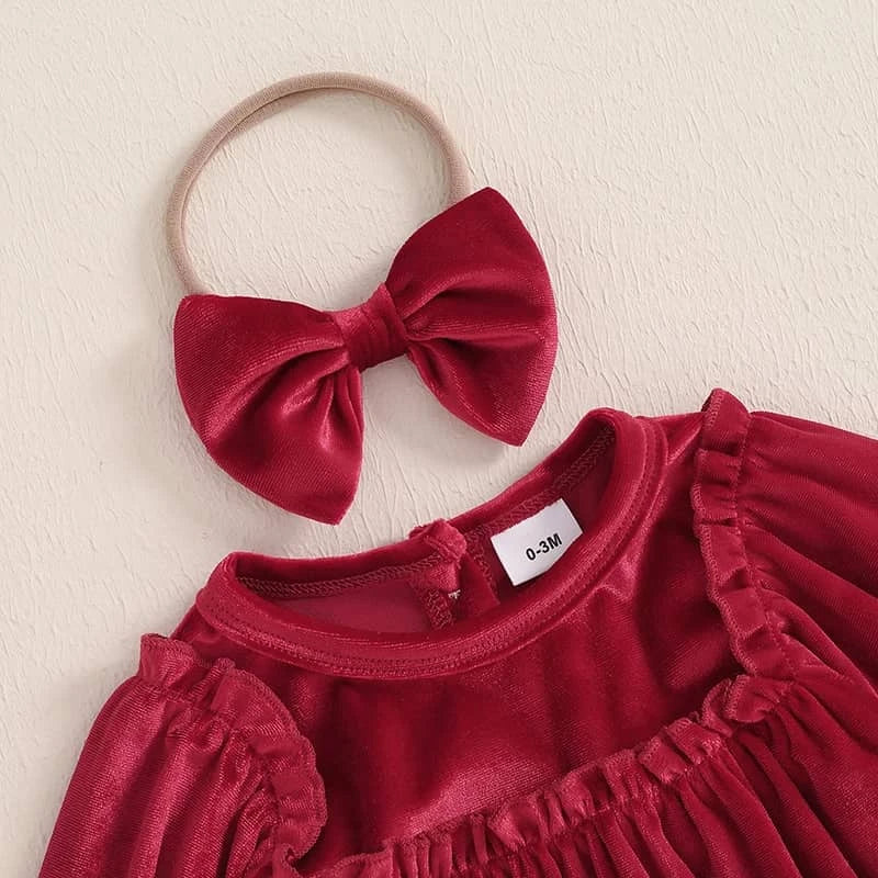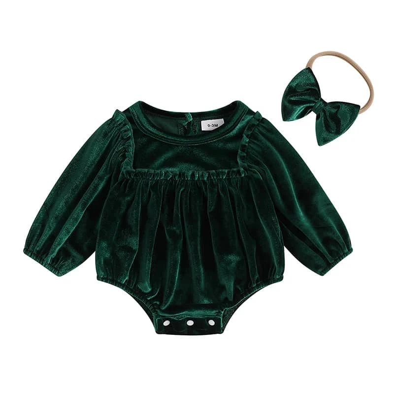 Each velvet holiday baby bubble set is crafted to keep your little one snug yet stylish. Headbands are soft and made to fit comfortably without slipping. You can pair the set with tights or soft shoes for extra warmth. It works well for holiday portraits or everyday outings.