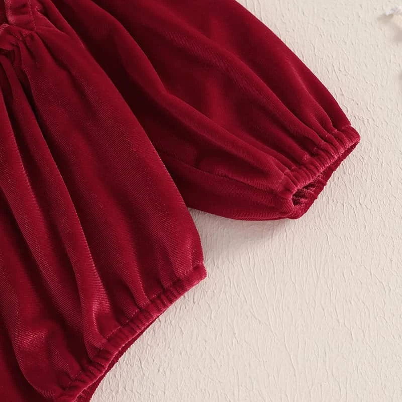 Choose from classic deep green or rich burgundy. The colors are vibrant and do not fade after washing. The velvet holiday baby bubble set stands out for celebrations, parties, or casual wear. The fabric is sturdy and keeps its shape. The fit gives freedom of movement for babies learning to crawl or walk.