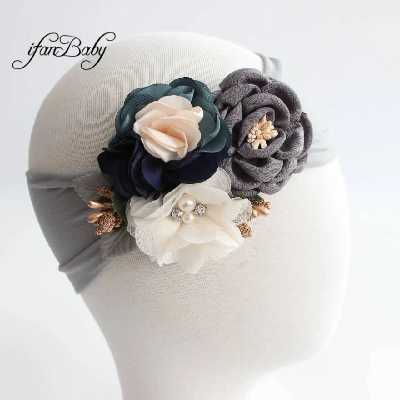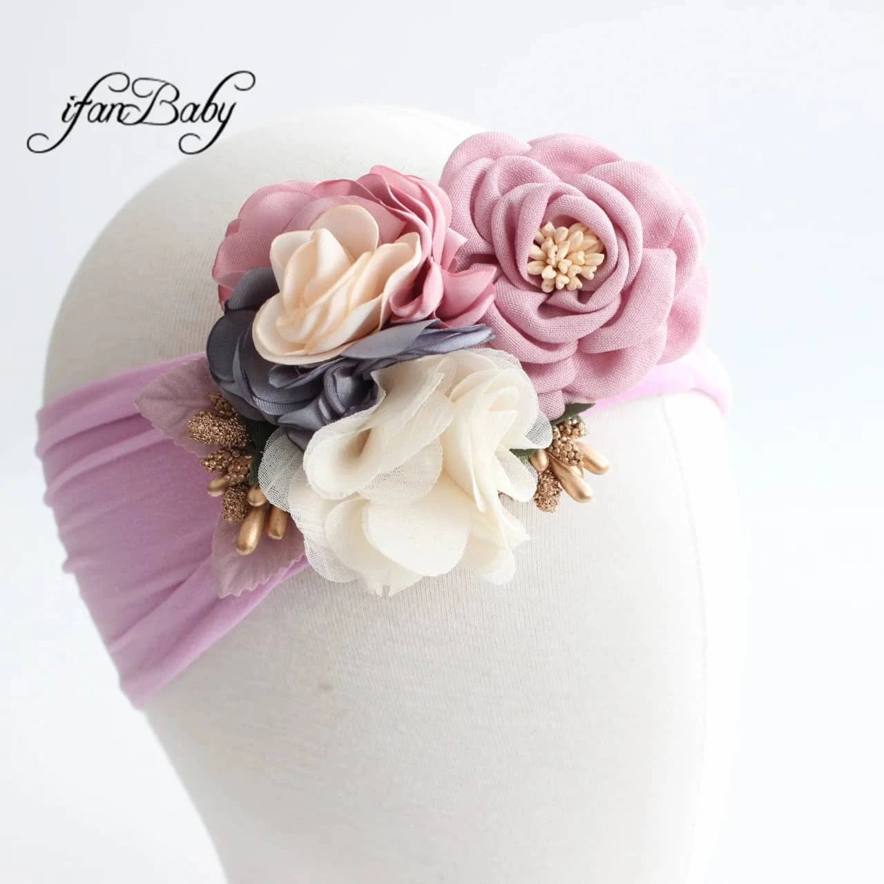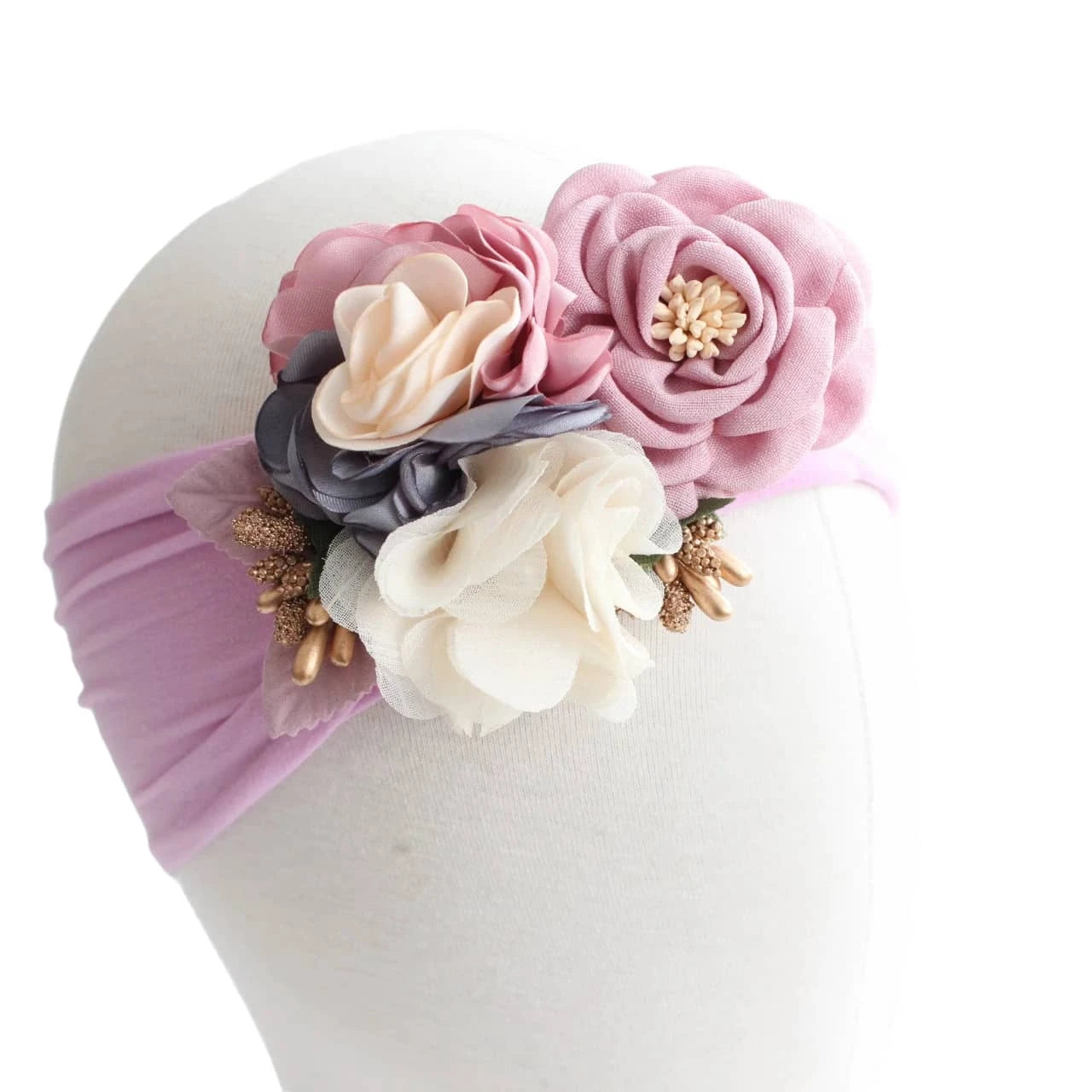 Vintage Floral Baby Headband with Soft Flower Accents