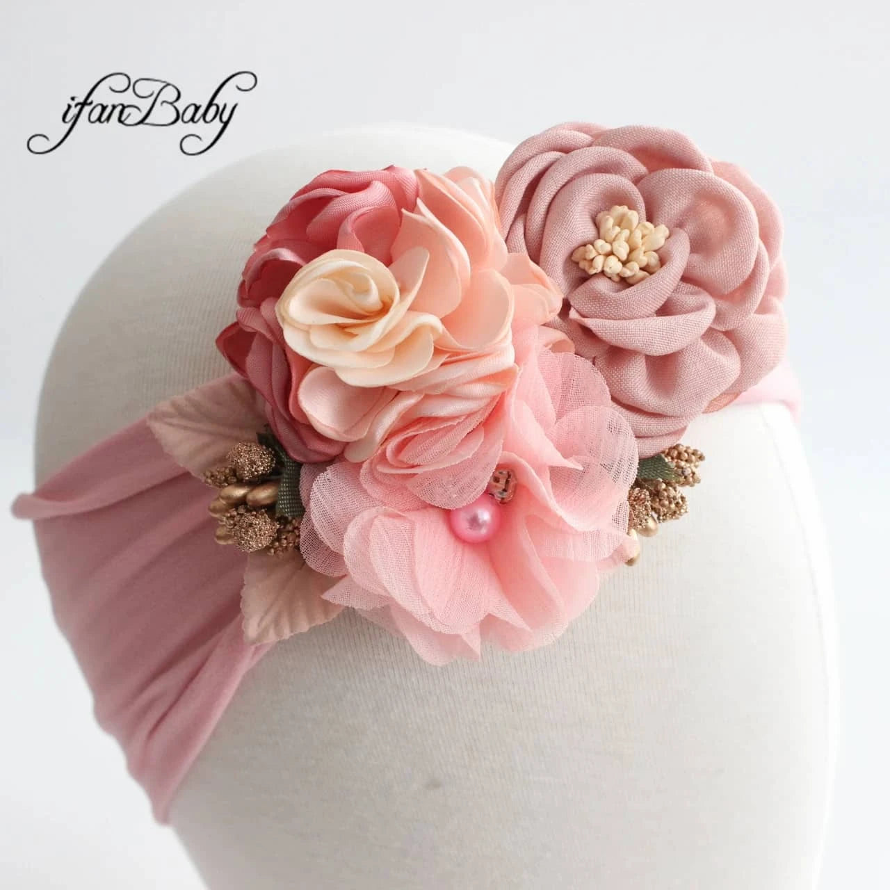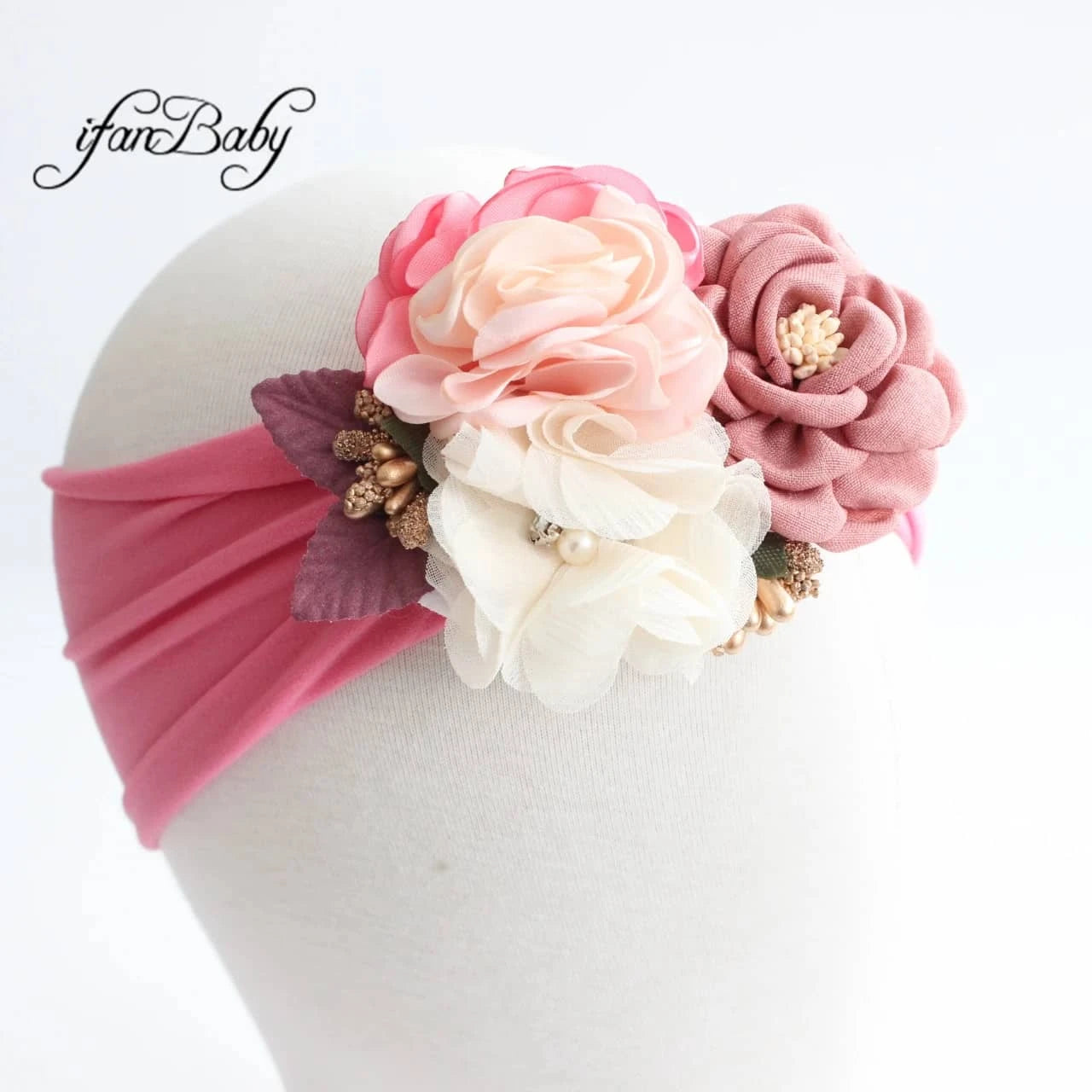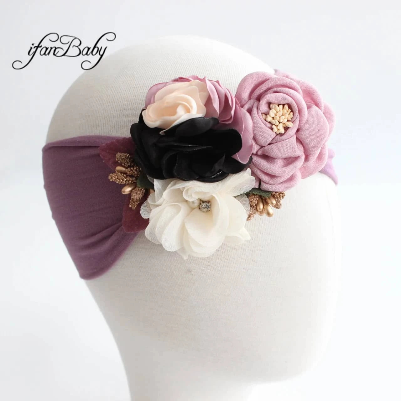 Vintage Floral Baby Headband with Soft Flower Accents