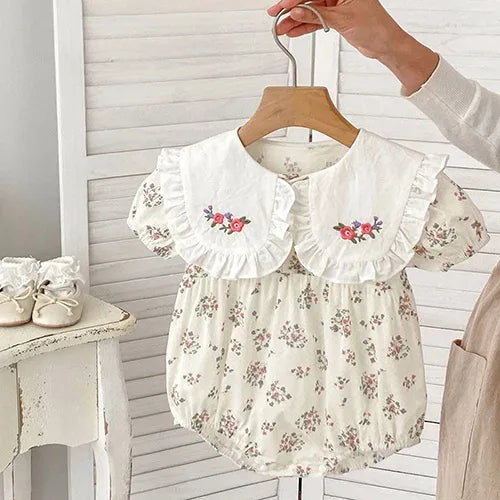 Key features of the "Summer Fleurs" Vintage Style Baby Rompers include: