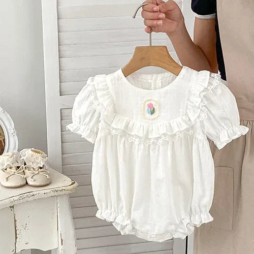 Crafted from a comfortable cotton blend, these rompers are not only soft against delicate skin but also wrinkle-resistant and easy to care for. They are ideal for warm spring and summer days, providing both style and comfort. Dress your baby in these charming onesies and let her shine in the sun!