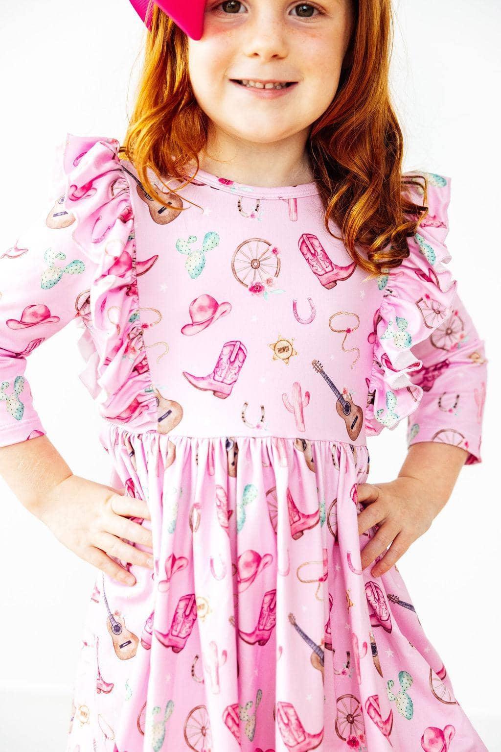 Pink Twirl Ruffle Dress Sleeve Western Dress for Girls