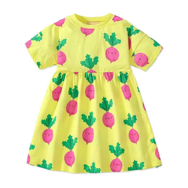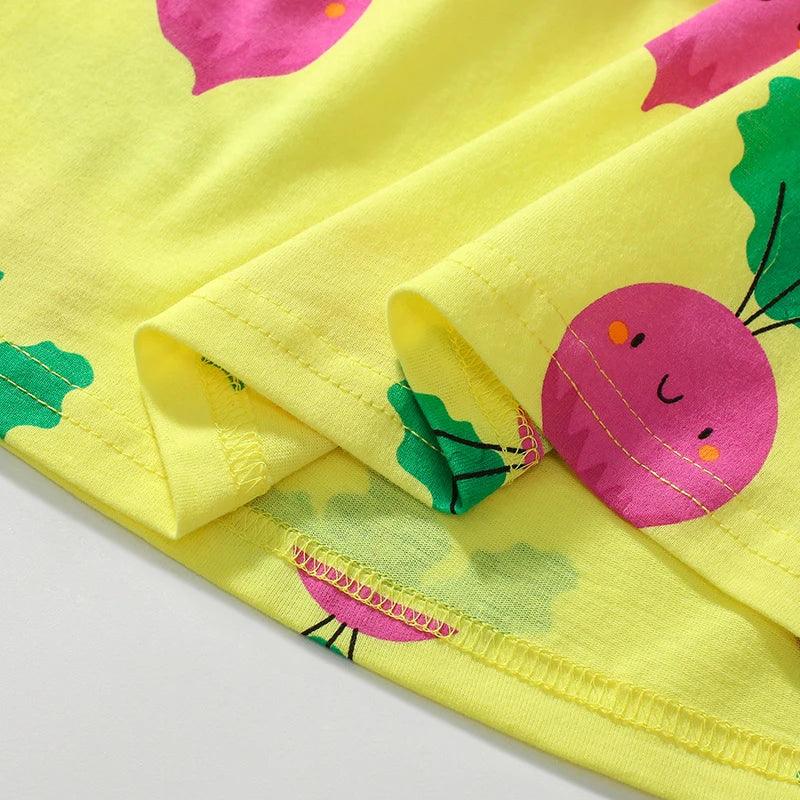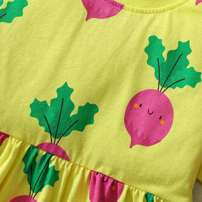 Lightweight and breathable fabric means your child stays cool. The yellow radish print dress for girls slips easily over the head. No tricky closures. No itchy tags. Just instant, cute style. Parents love how easy it is to care for—just toss it in the wash.